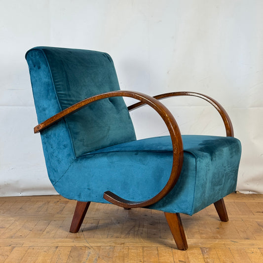 Fully restored Jindřich Halabala H-410 Art Deco armchair from the 1930s