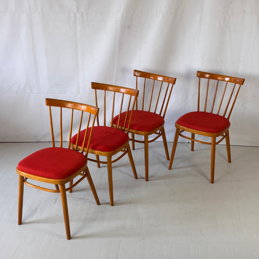 Set of 4 Tatra Nabytok Red Spindle-back Dining Chairs, 1960s