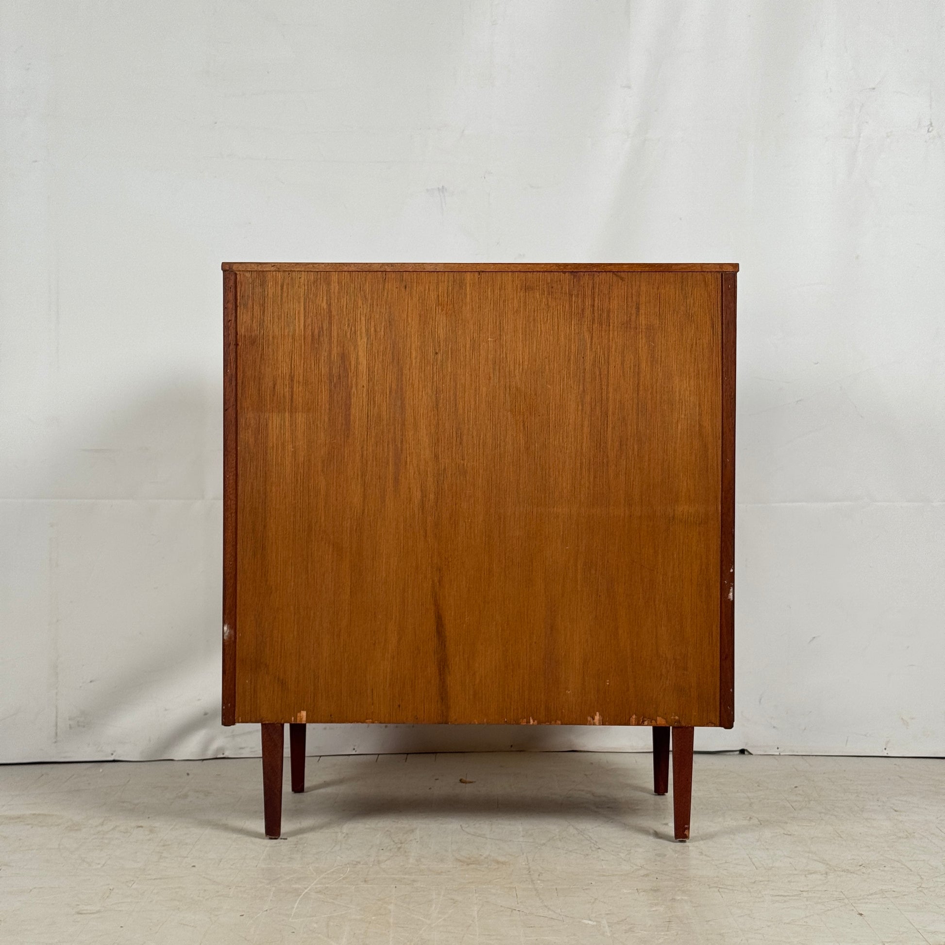 Solid teak sideboard by Austinsuite, featuring a 1x4 drawer layout in a clean, mid-century design. The piece is in its original vintage condition, with natural signs of age and use visible in the photos.