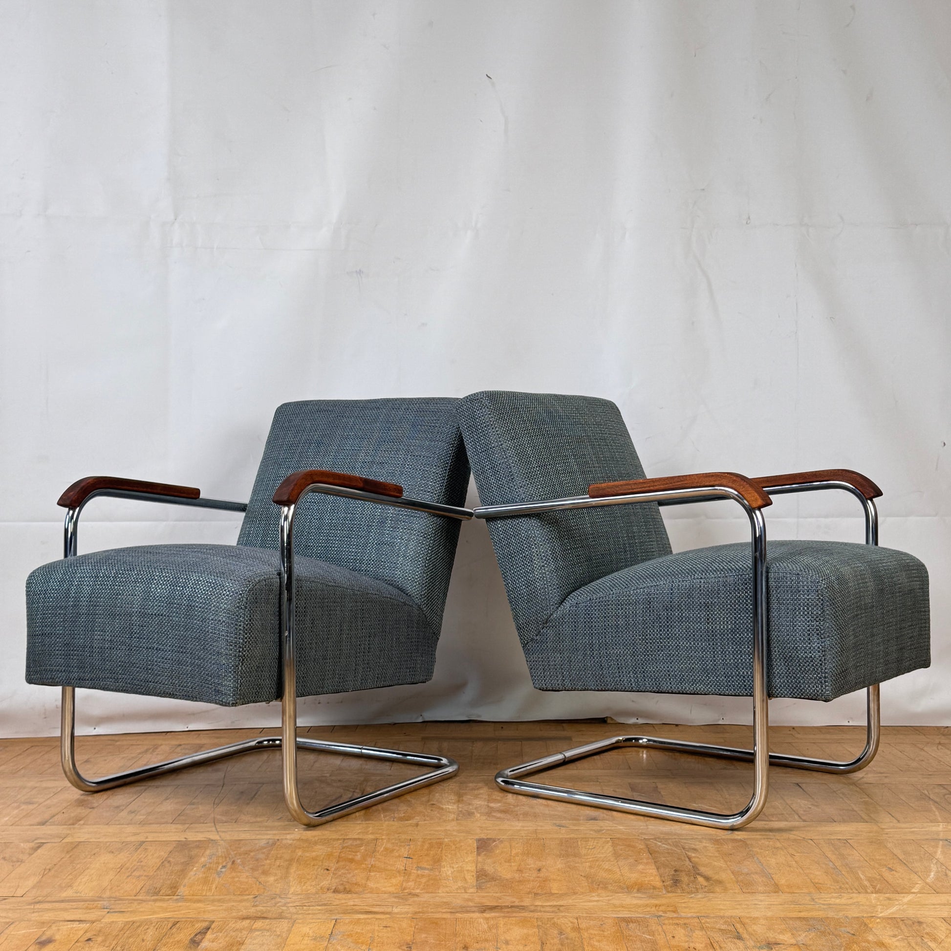 Set of two Tubular Steel Armchairs by Anton Lorenz 1930s
