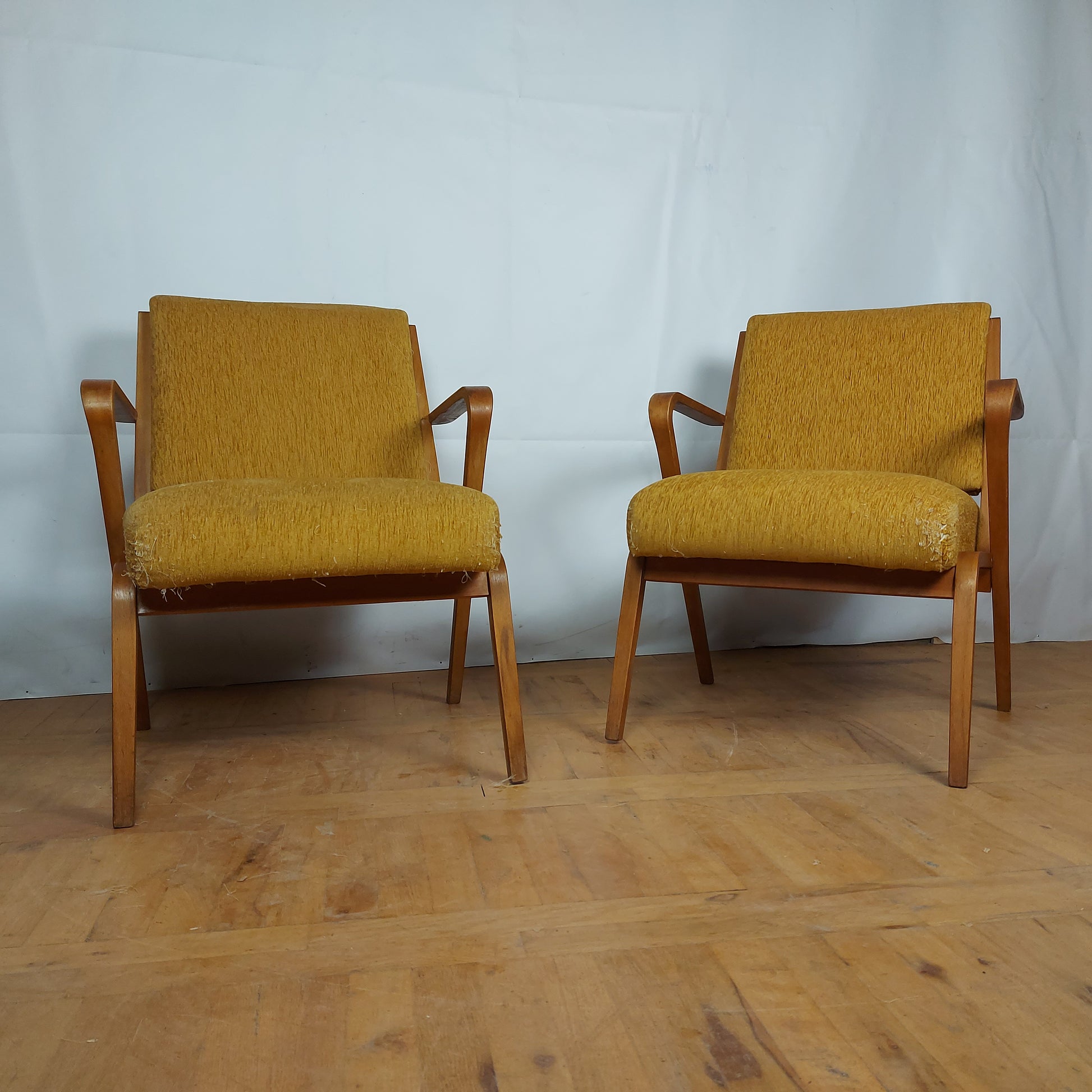 Designed by the Serbian origin Selman Selmanagic in 1958. Manufactured in DDR (East-Germany). The chairs are in stabile, but used condition. They need restauration and new upholstery.