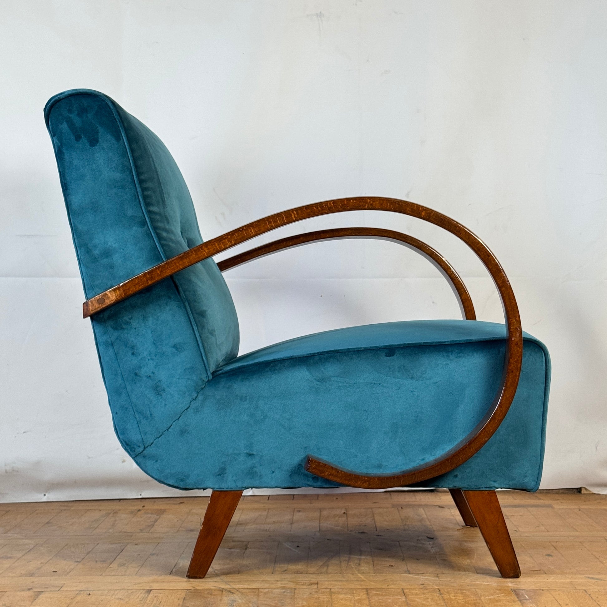 Fully restored Jindřich Halabala H-410 Art Deco armchair from the 1930s