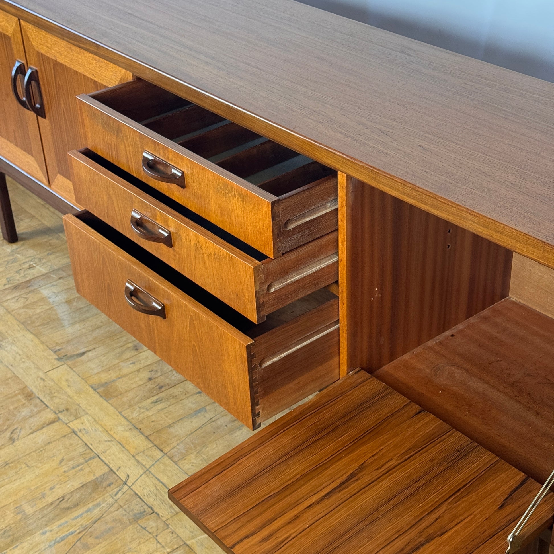 This 204 cm sideboard is part of GPlan Sierra series from 1970s. Nice, original condition with few signs of usage. Right hand door was repaired.
