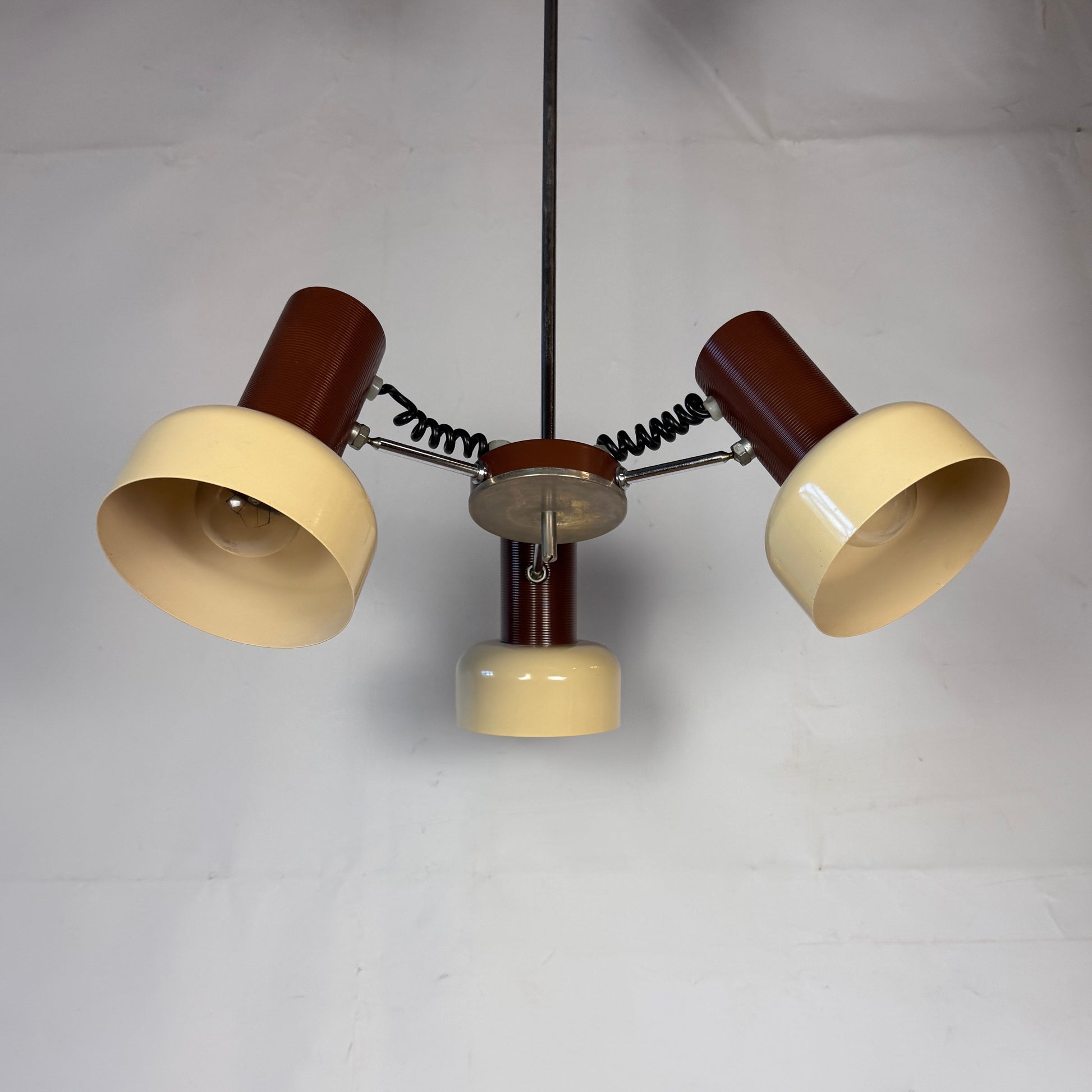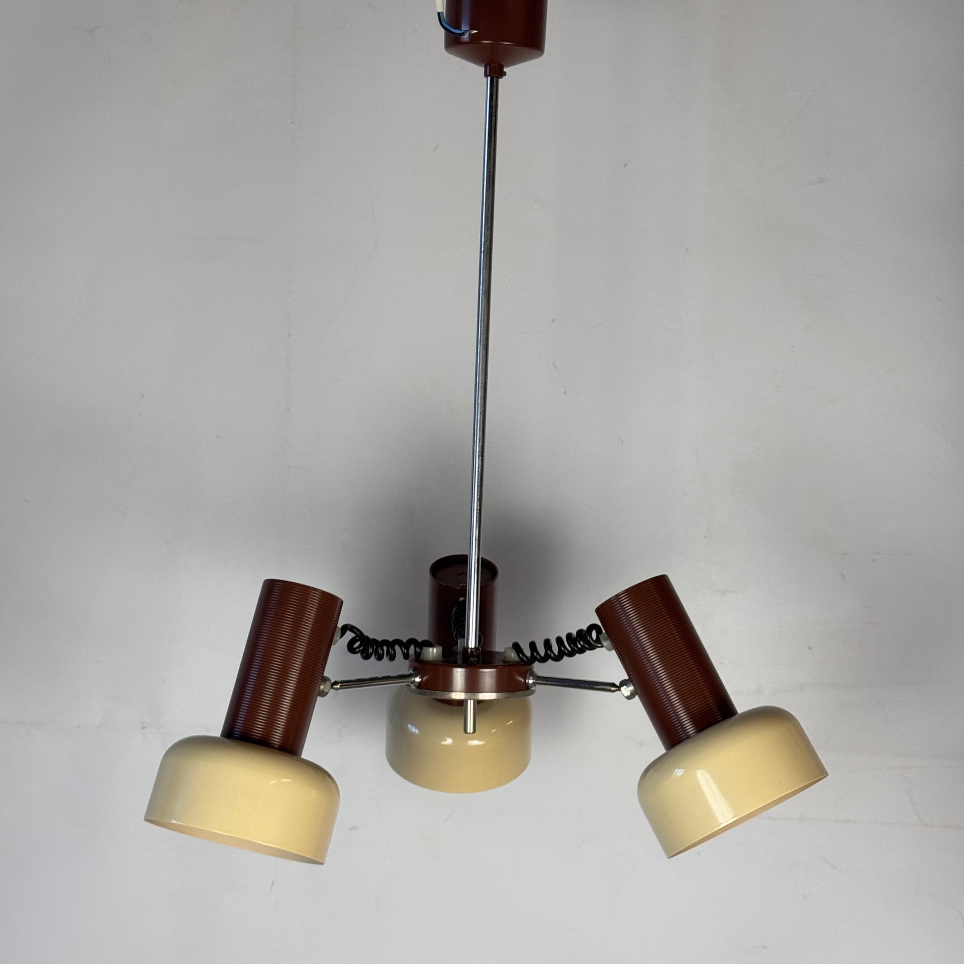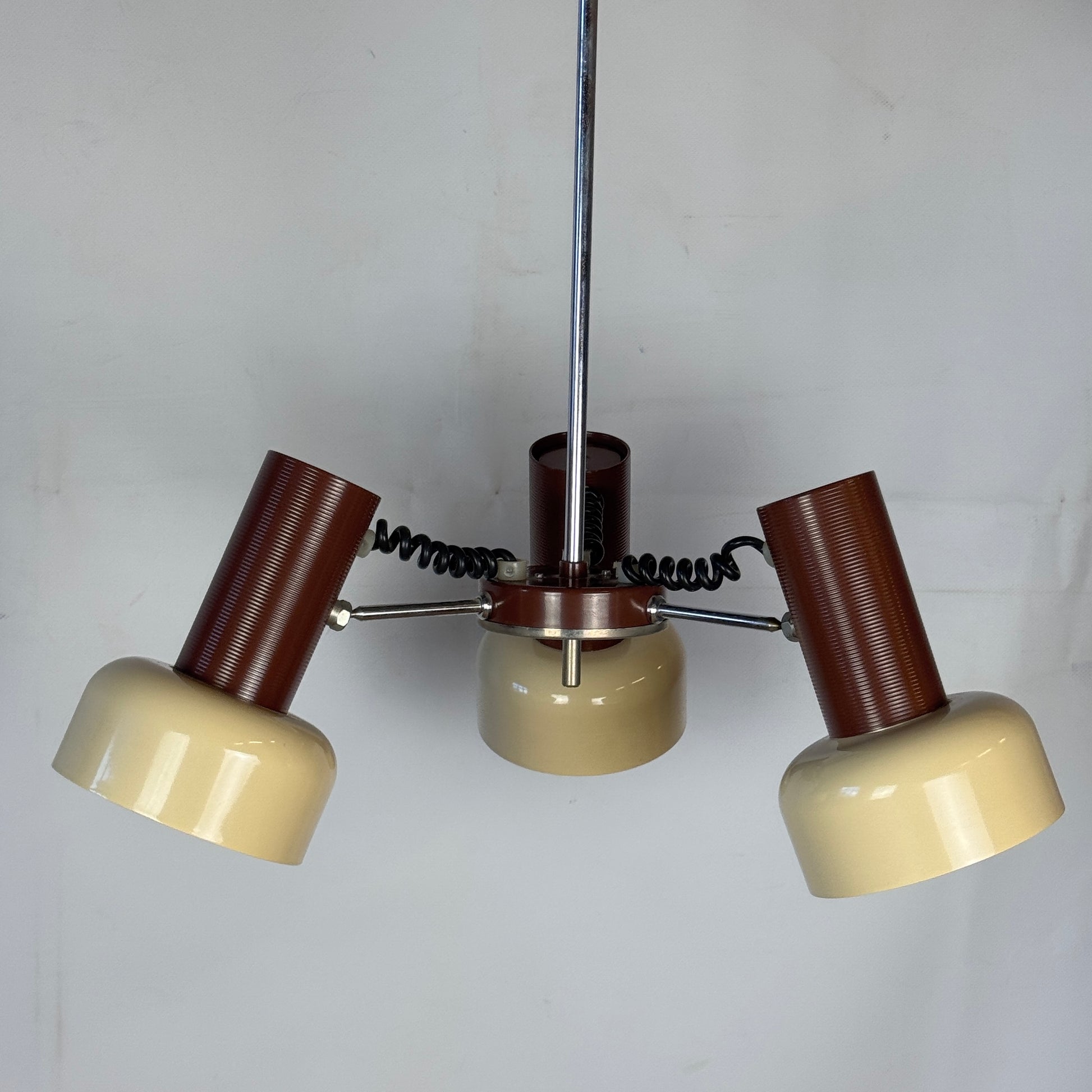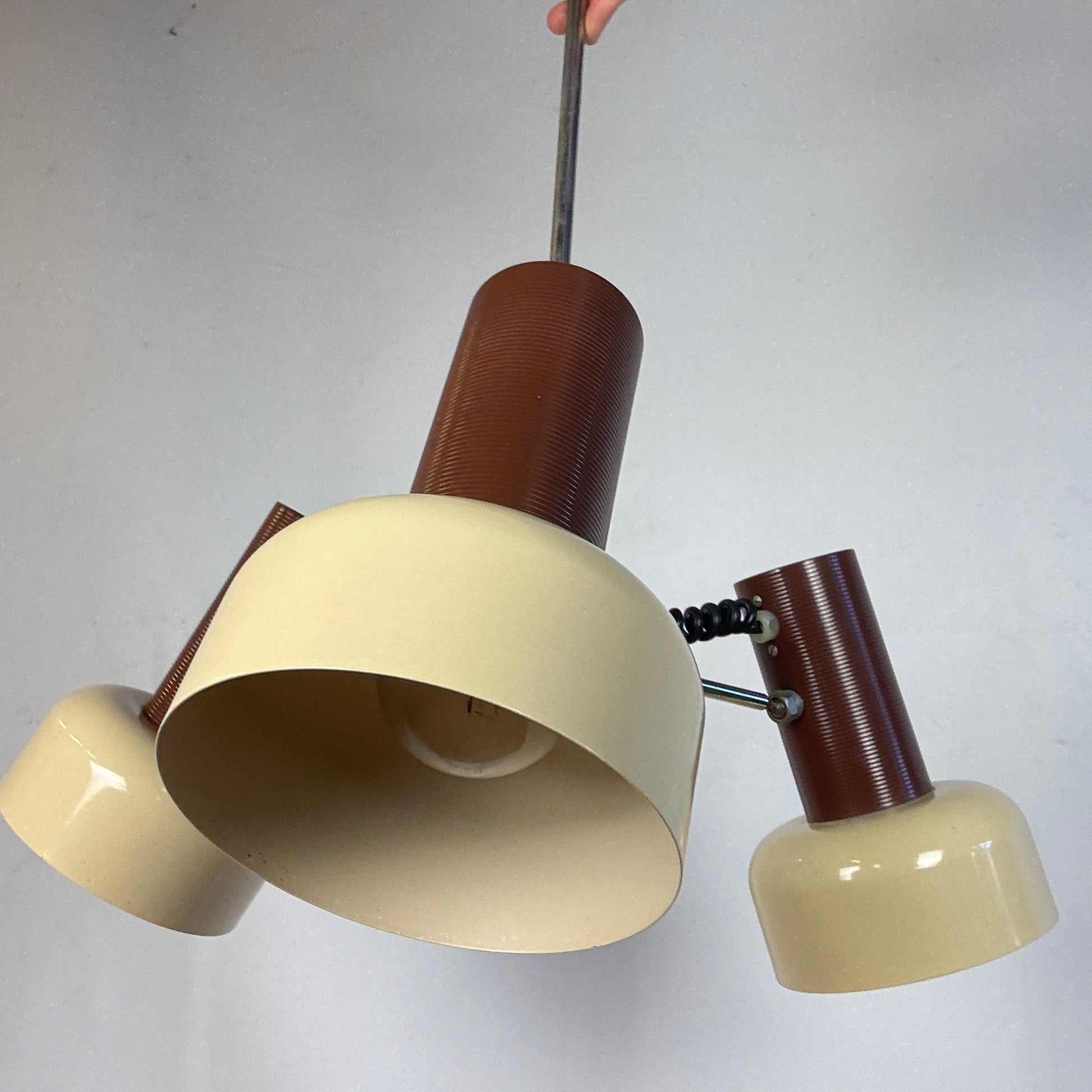 Czechoslovakian made vintage pendant lamp by Jozef Hurka for Napako 1960s. Made of metal (aluminum and steel). It is in very nice original condition with no some signs of use. Works with 3 regular E27 bulb.