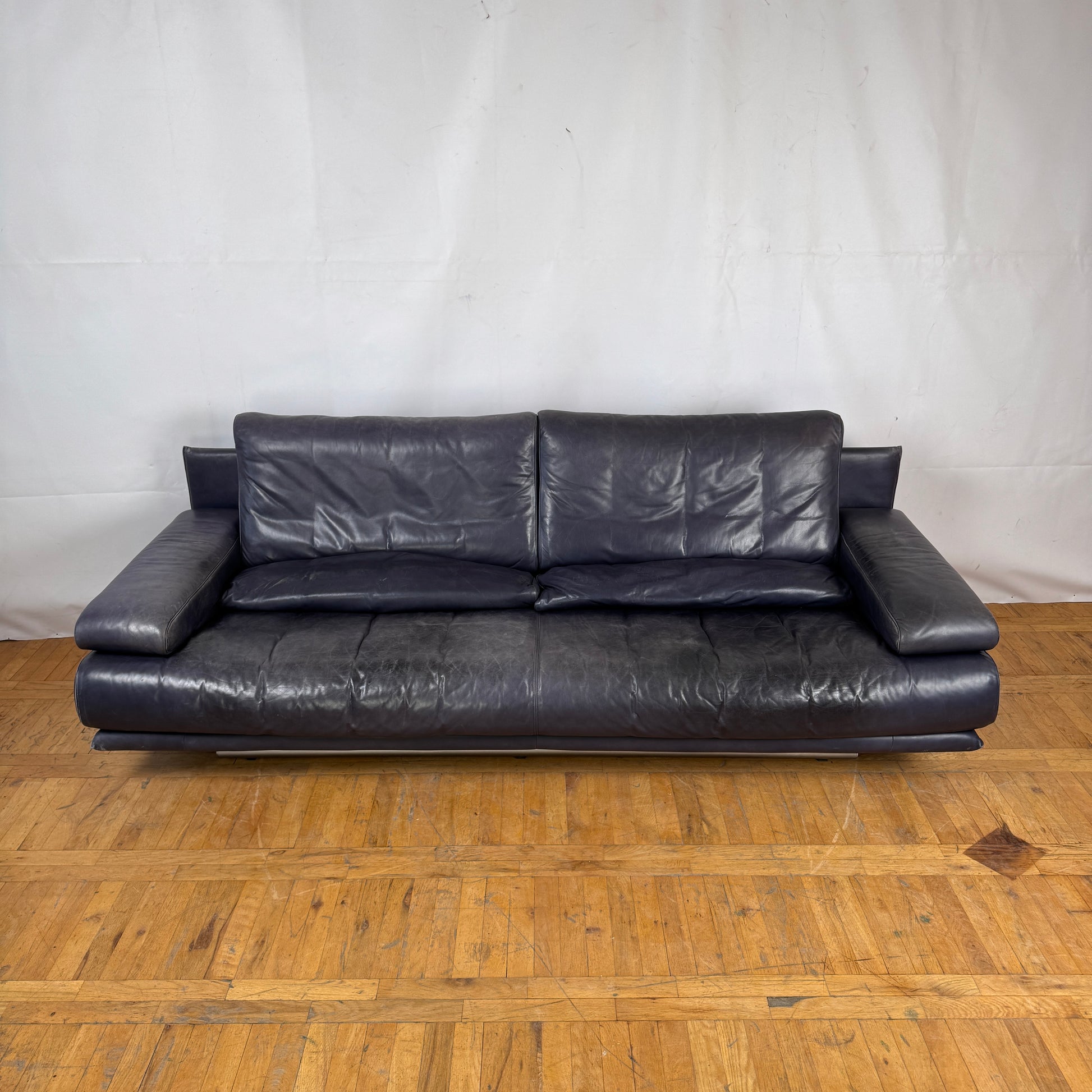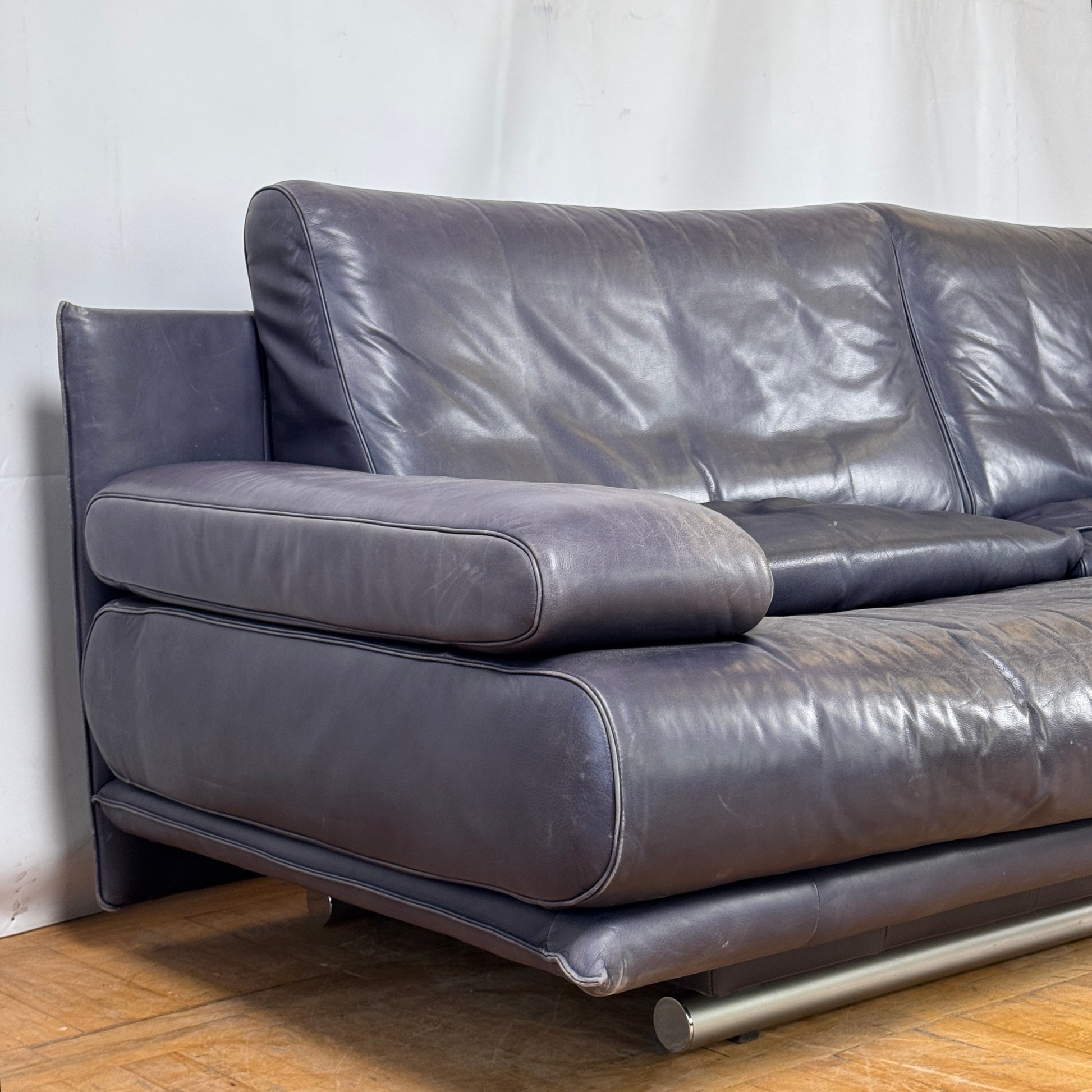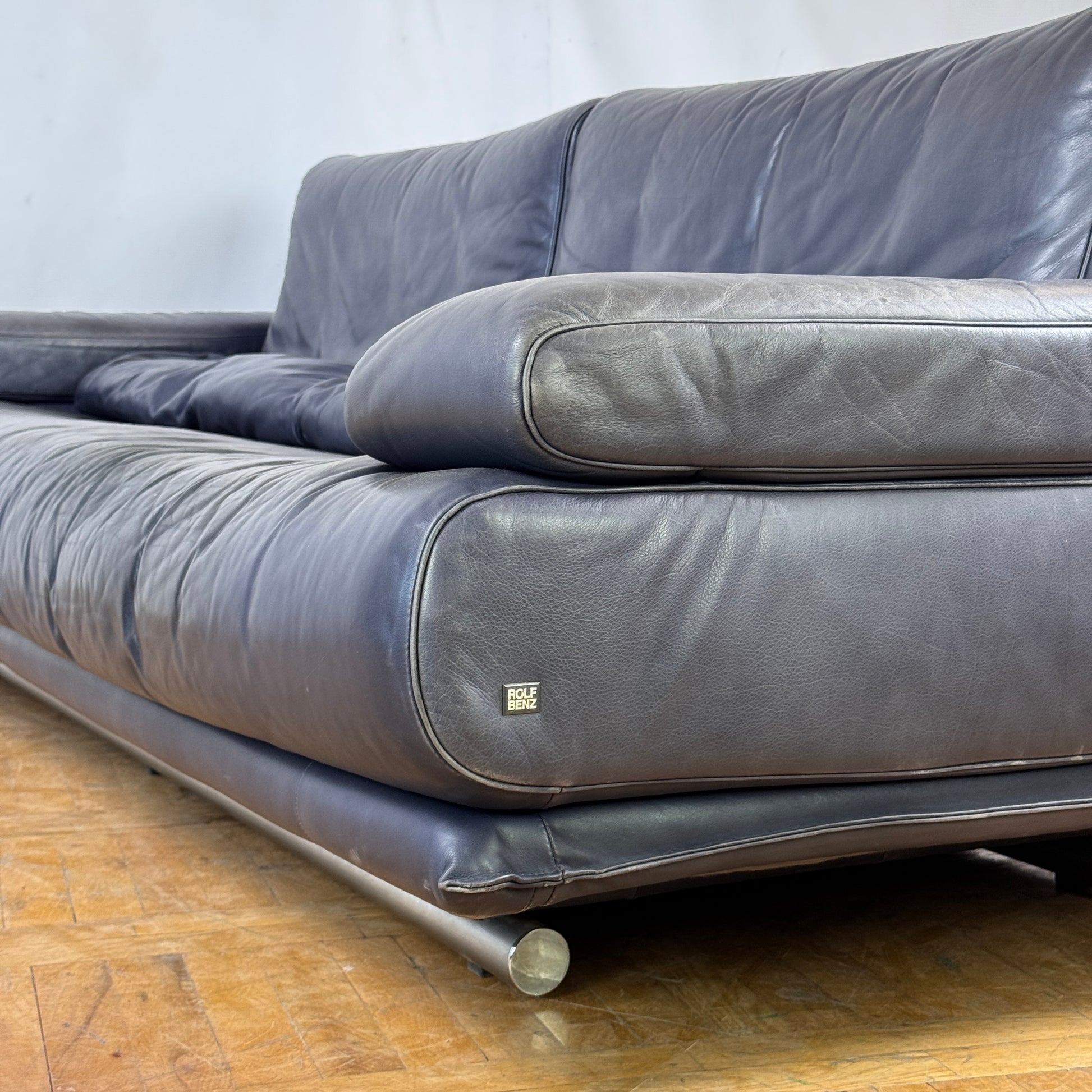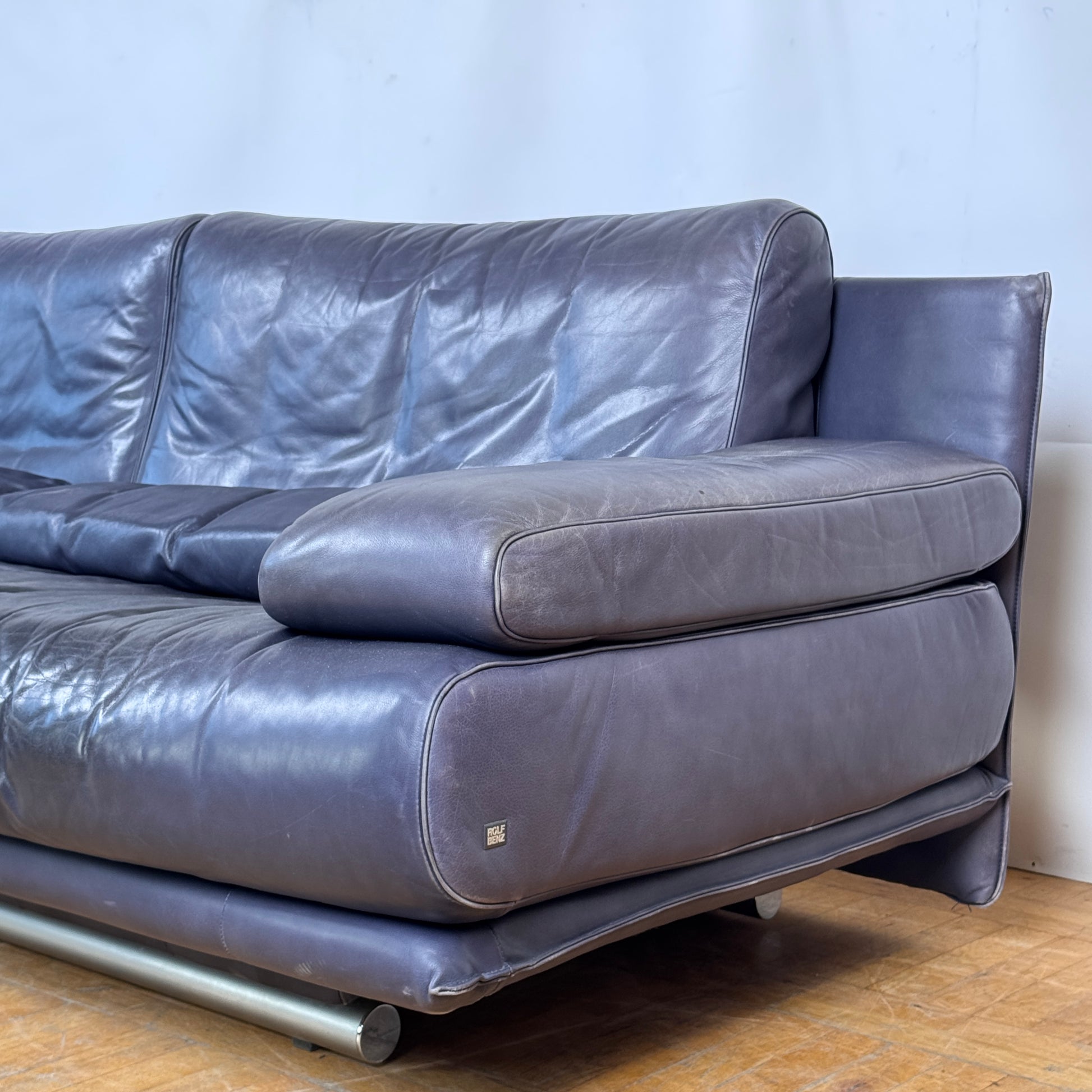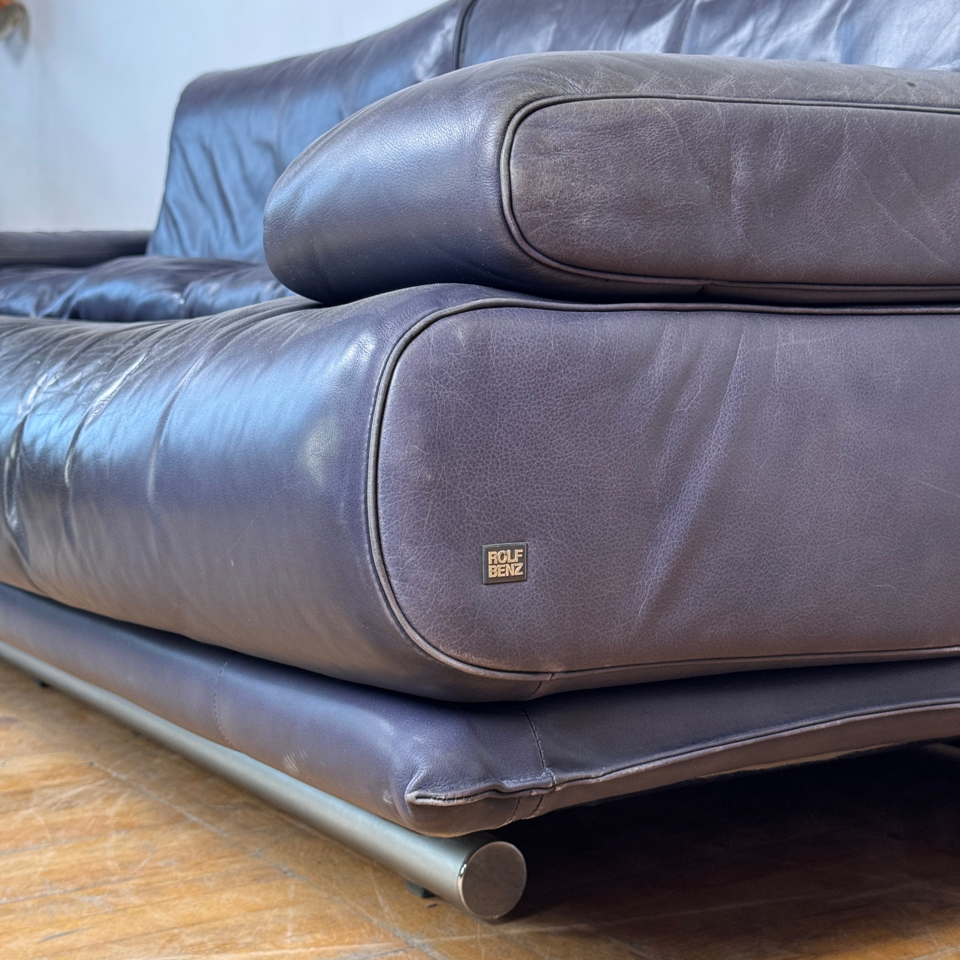 Blue leather Rolf Benz 6500 3 seater sofa by Matthias Hoffmann 1985