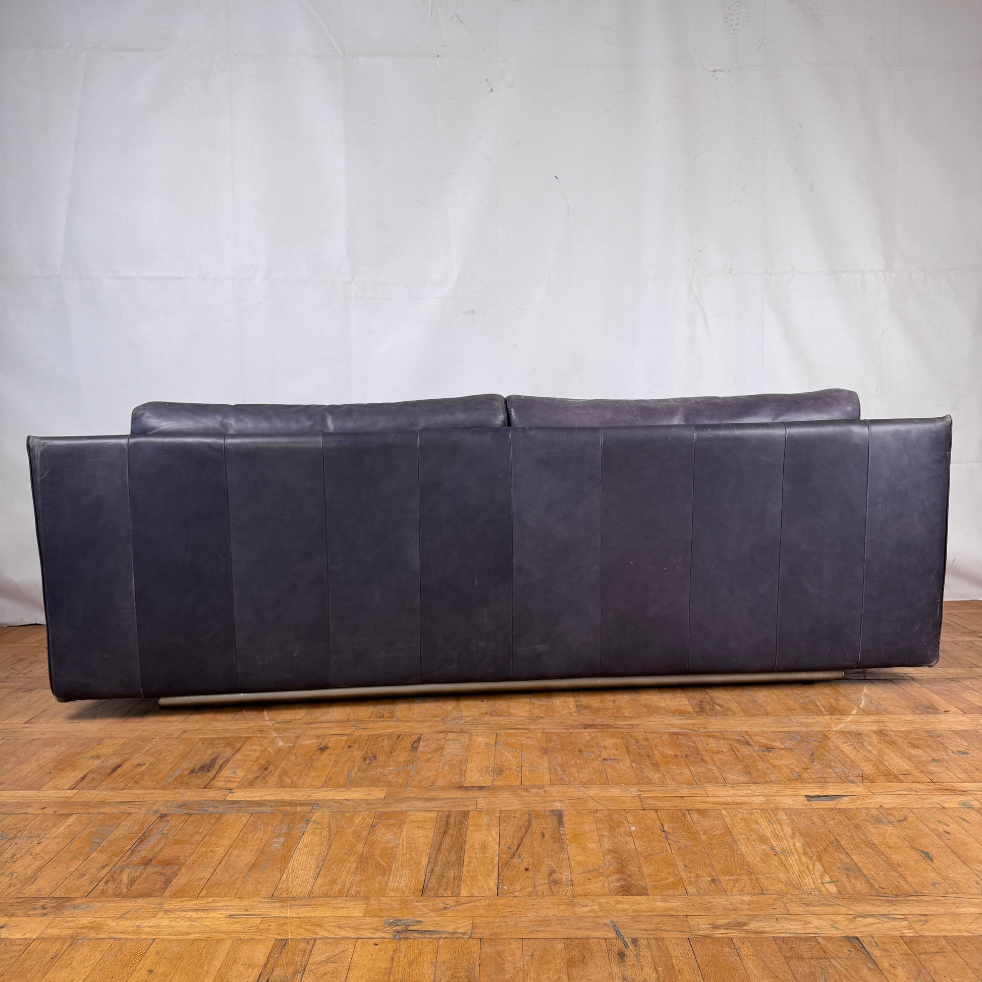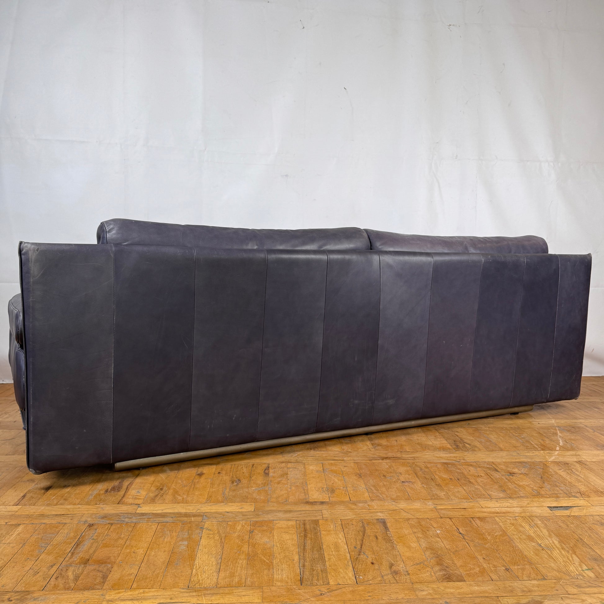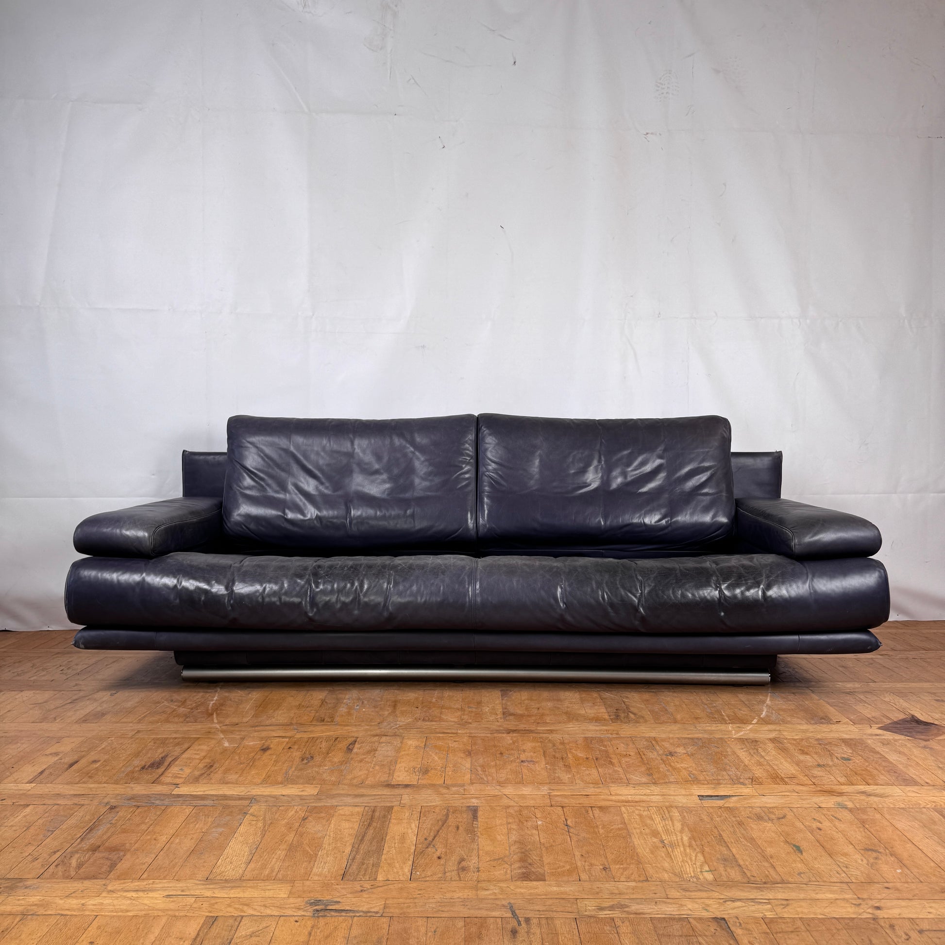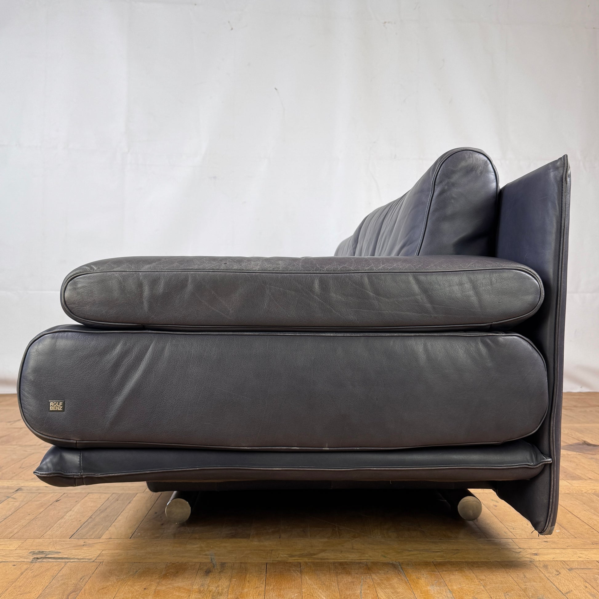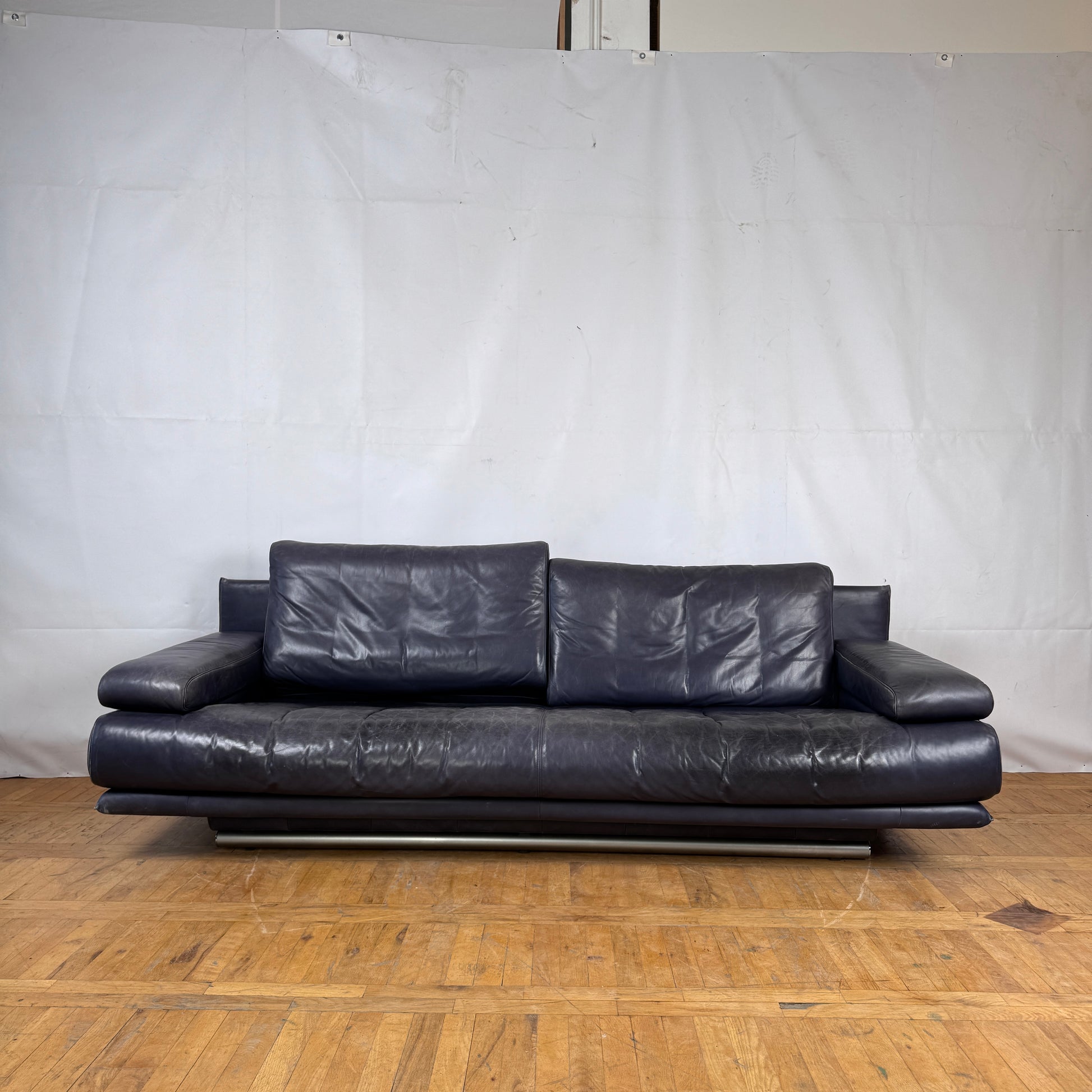 Blue leather Rolf Benz 6500 3 seater sofa by Matthias Hoffmann 1985