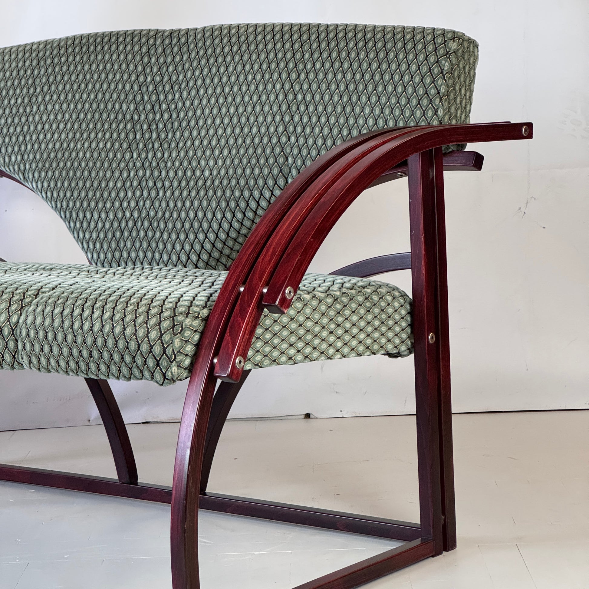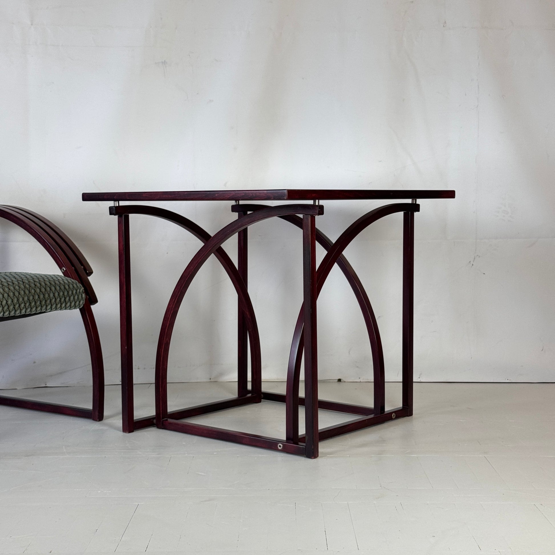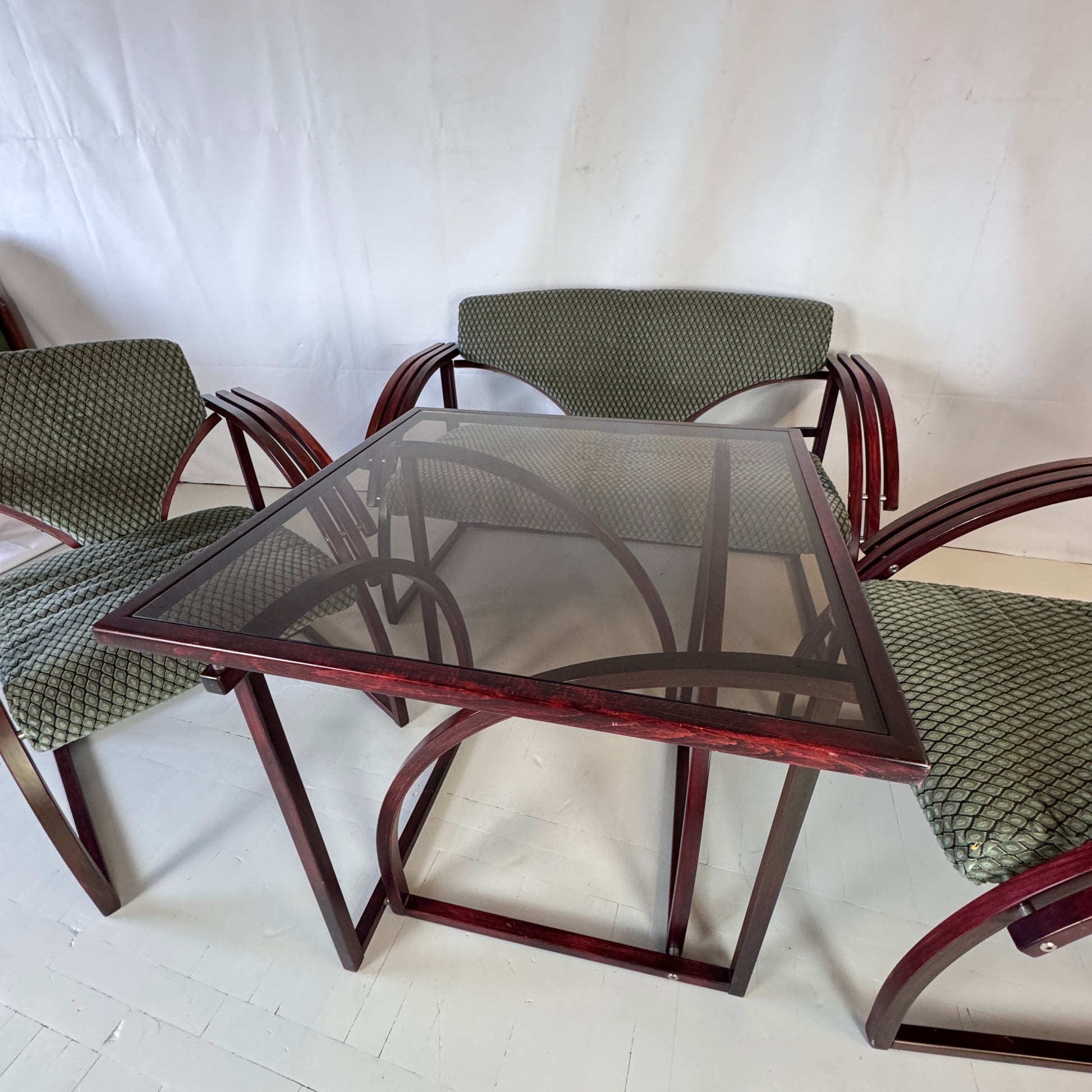 A striking postmodern set from Hungary, featuring a sofa, two matching armchairs, and a coffee table. Designed with bold forms and comfortable proportions, this set embodies the playful and functional aesthetic of Hungarian 1970s design.