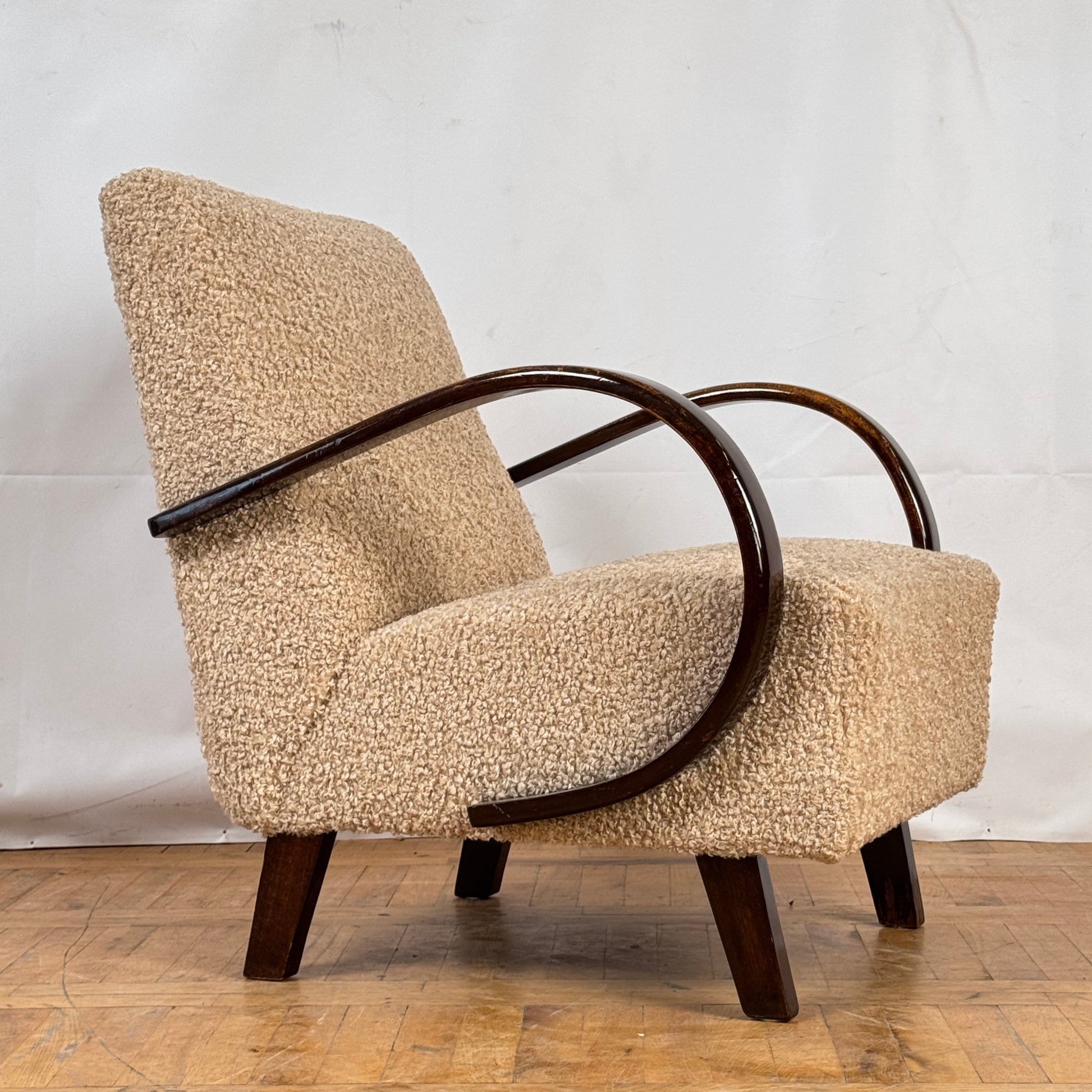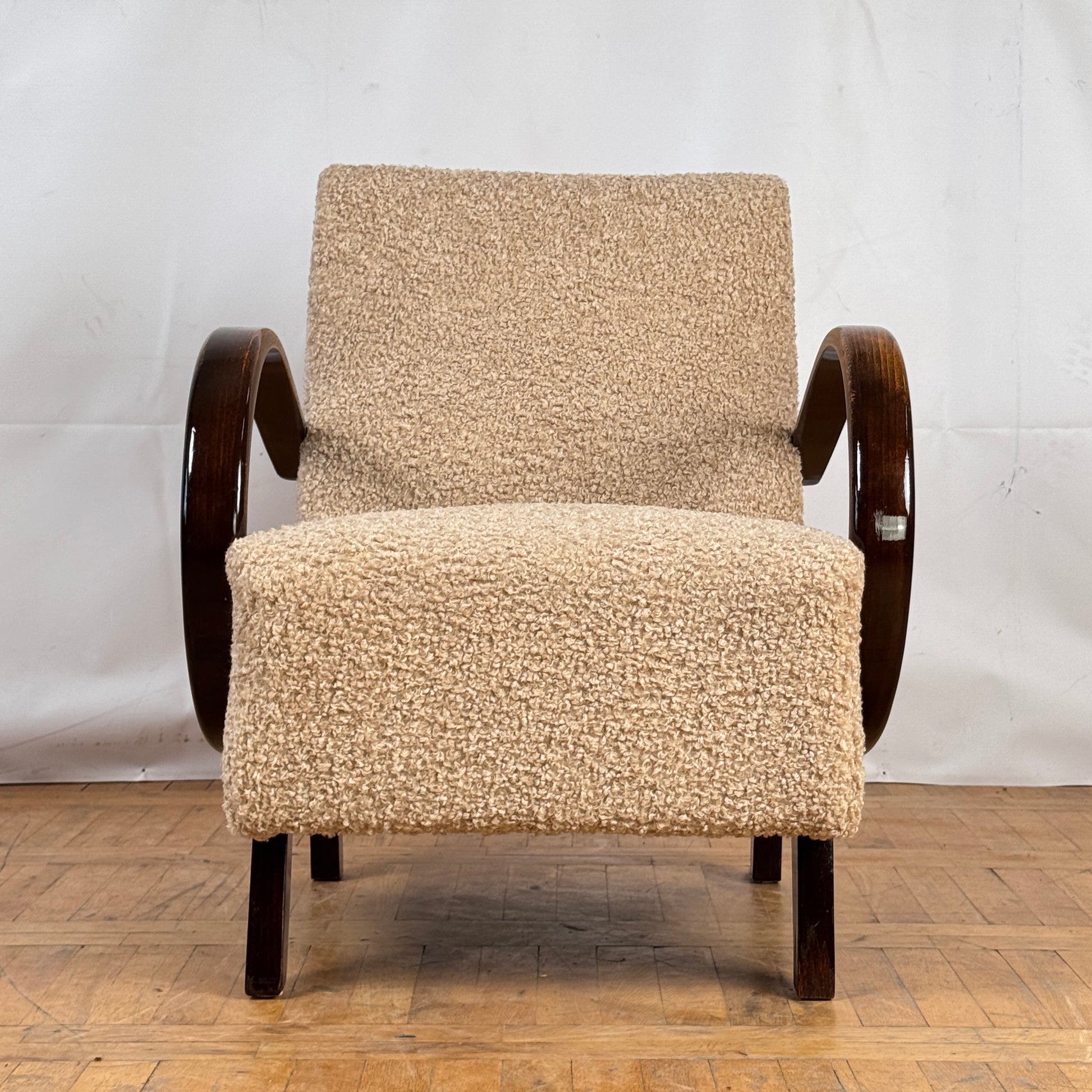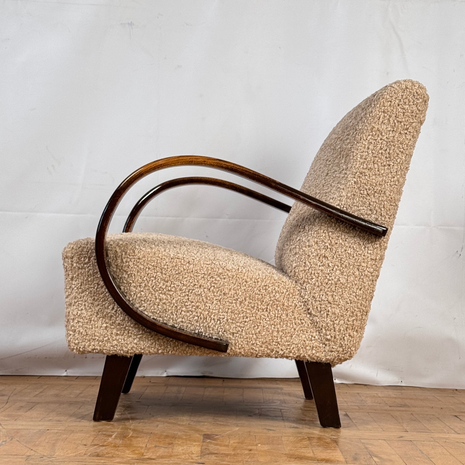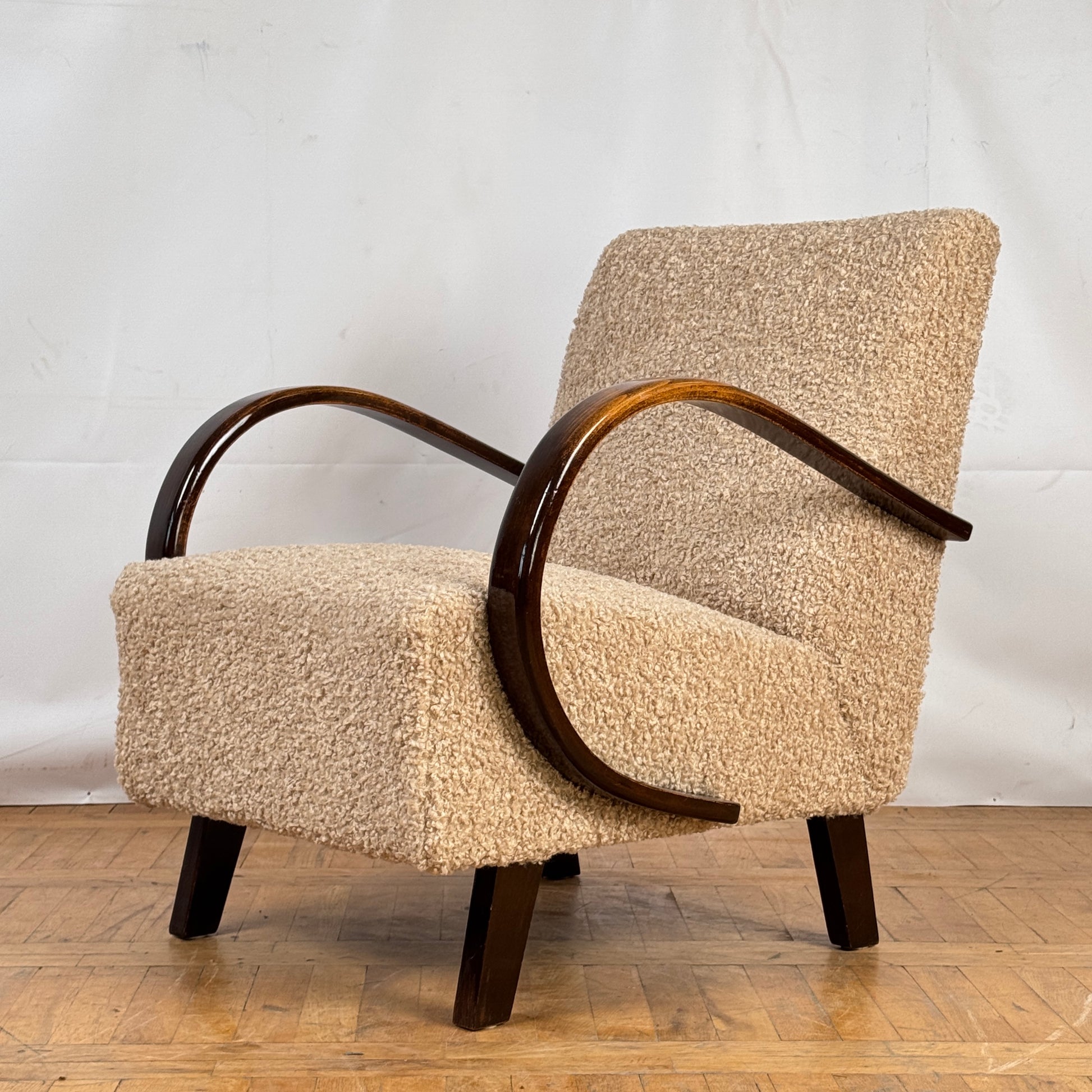 Jindrich Halabala H-410 fully restored beige art-deco armchair 1930s