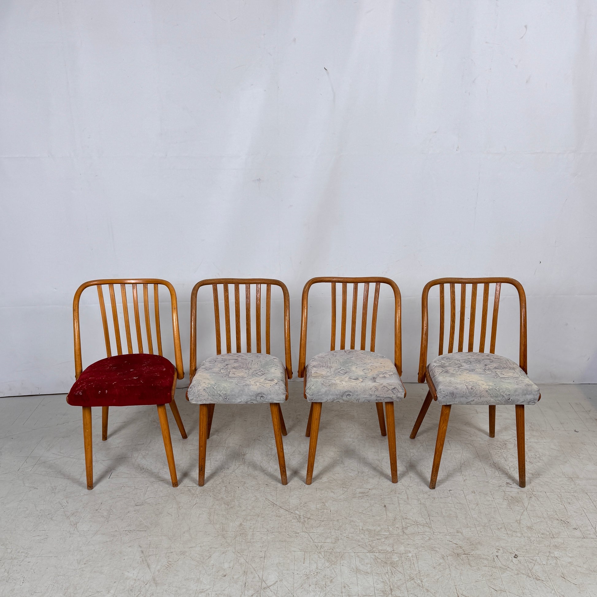 Set of 4 vintage dining chairs by Jitona, Czechoslovakia. Structurally stable, but the seats and upholstery need refurbishment — a perfect base for a restoration project.
