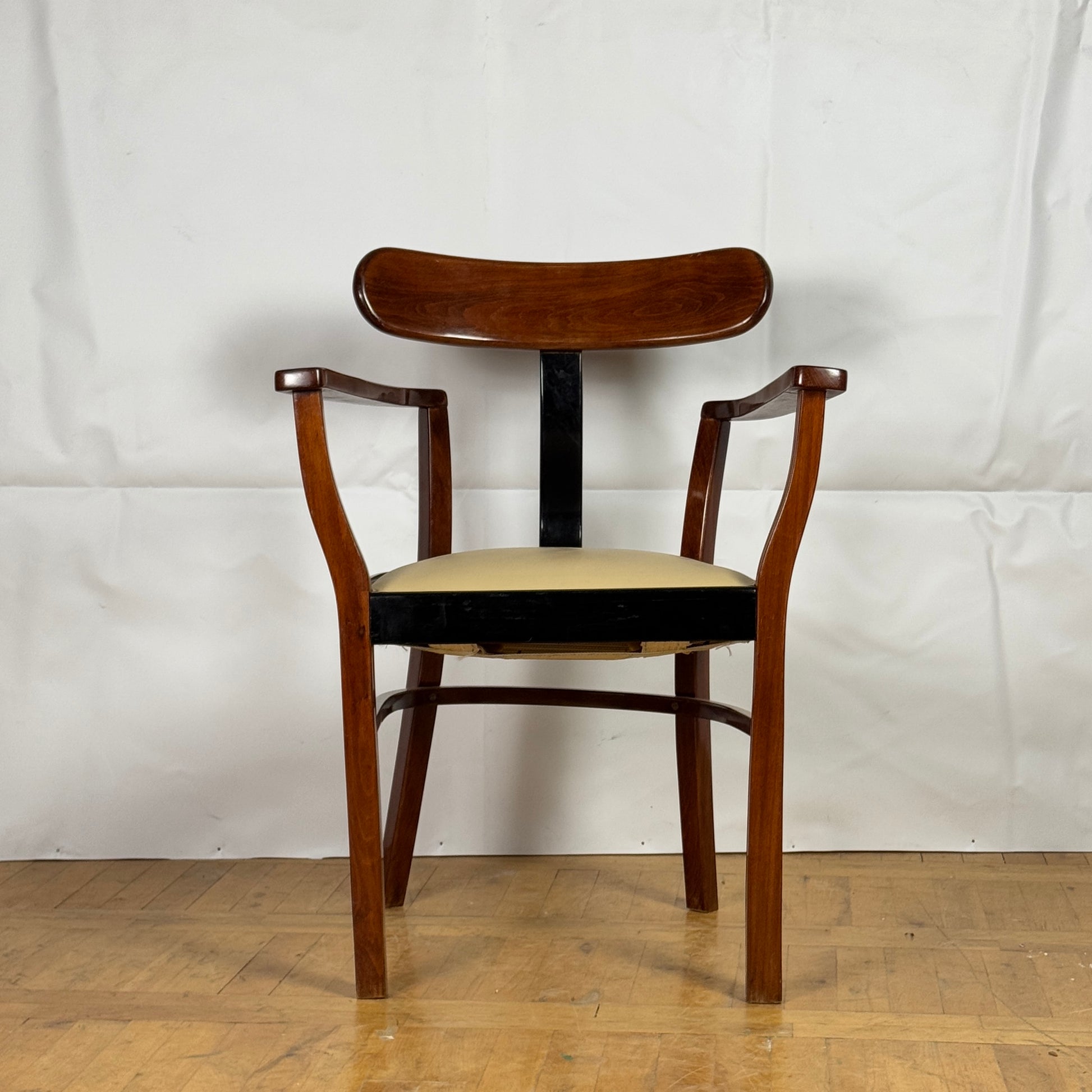 Chair designed by Hungarian Lajos Kozma (1884 – 1948) in the 1930s. This is an iconic design. This piece comes with leather upholstered seating, which is a late "improvement" vs original design.