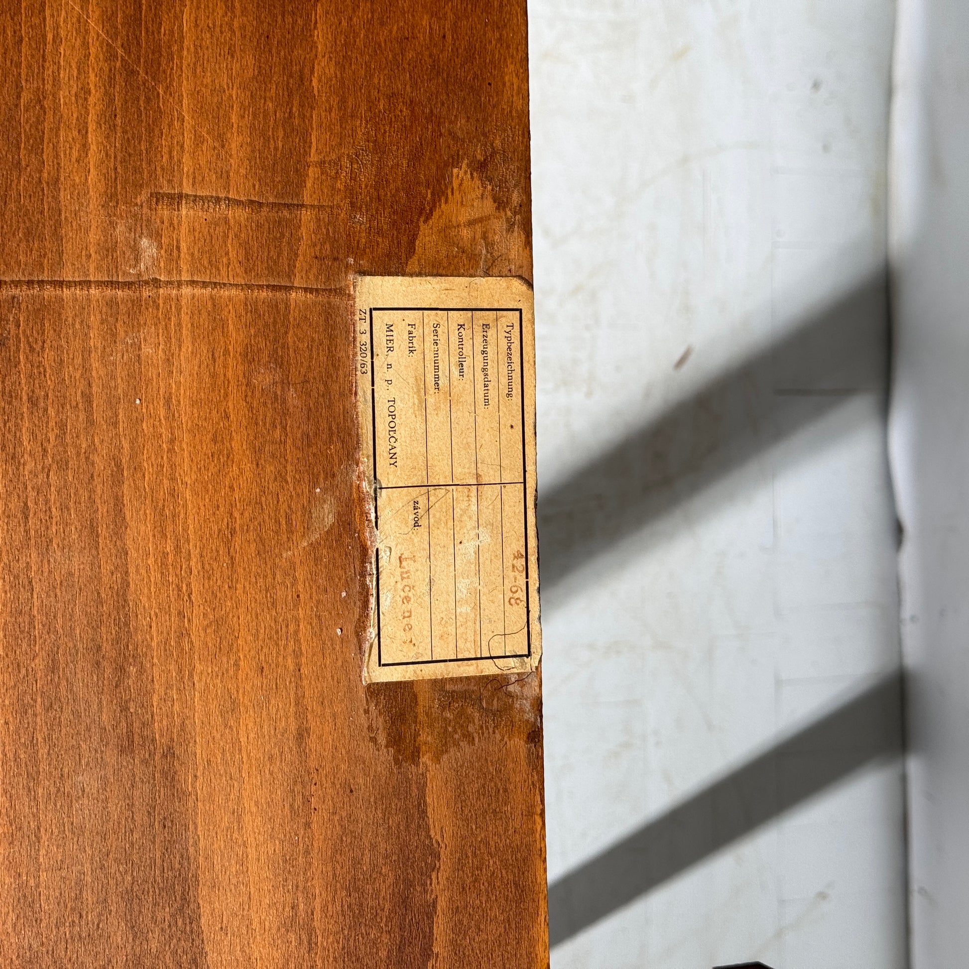 Mid-century extendable dining table by MIER Nábytok, crafted in Czechoslovakia in the 1960s. This piece features a minimalist design and warm wood tones, typical of the era’s craftsmanship. The table is in vintage condition with visible signs of age and use — please see photos for details.
