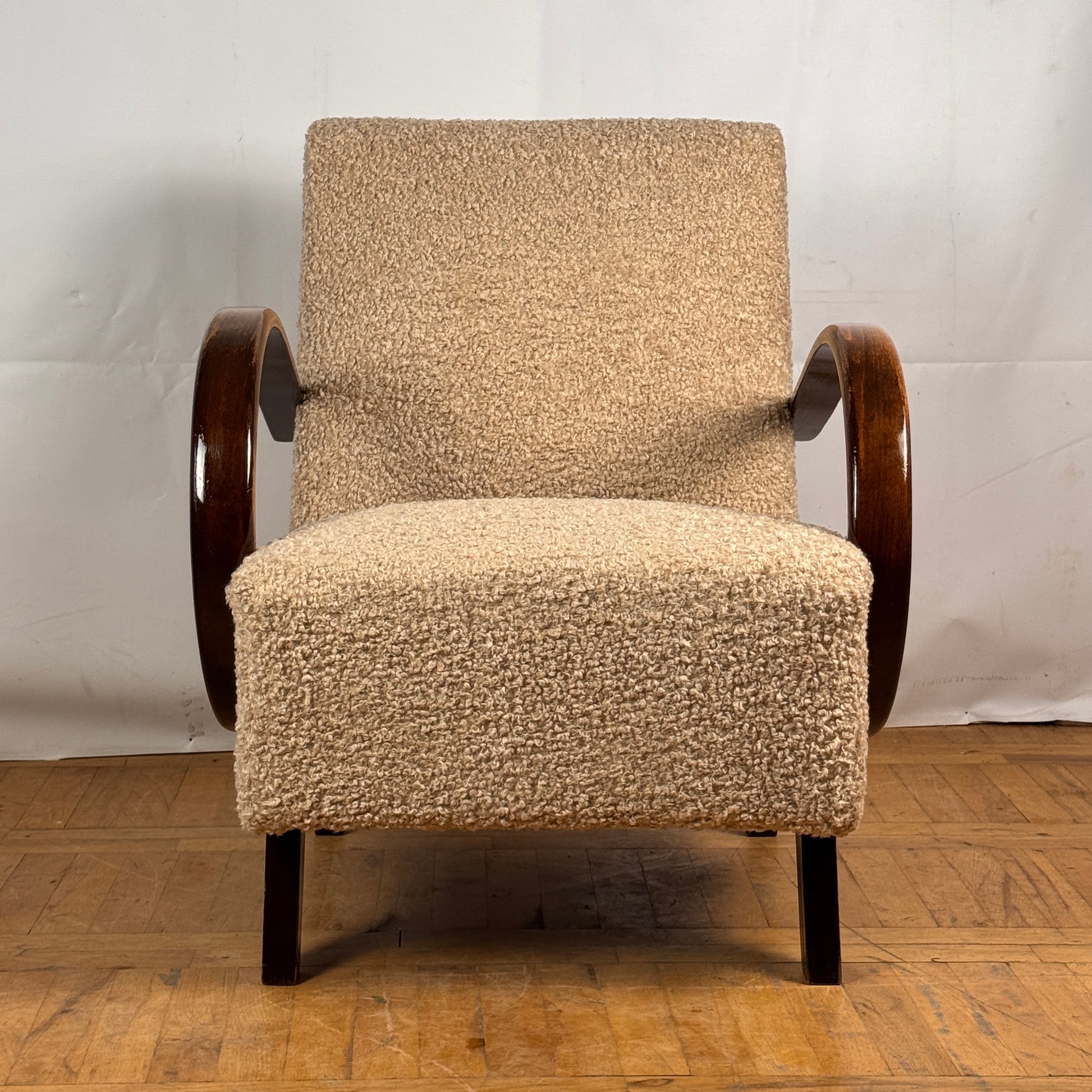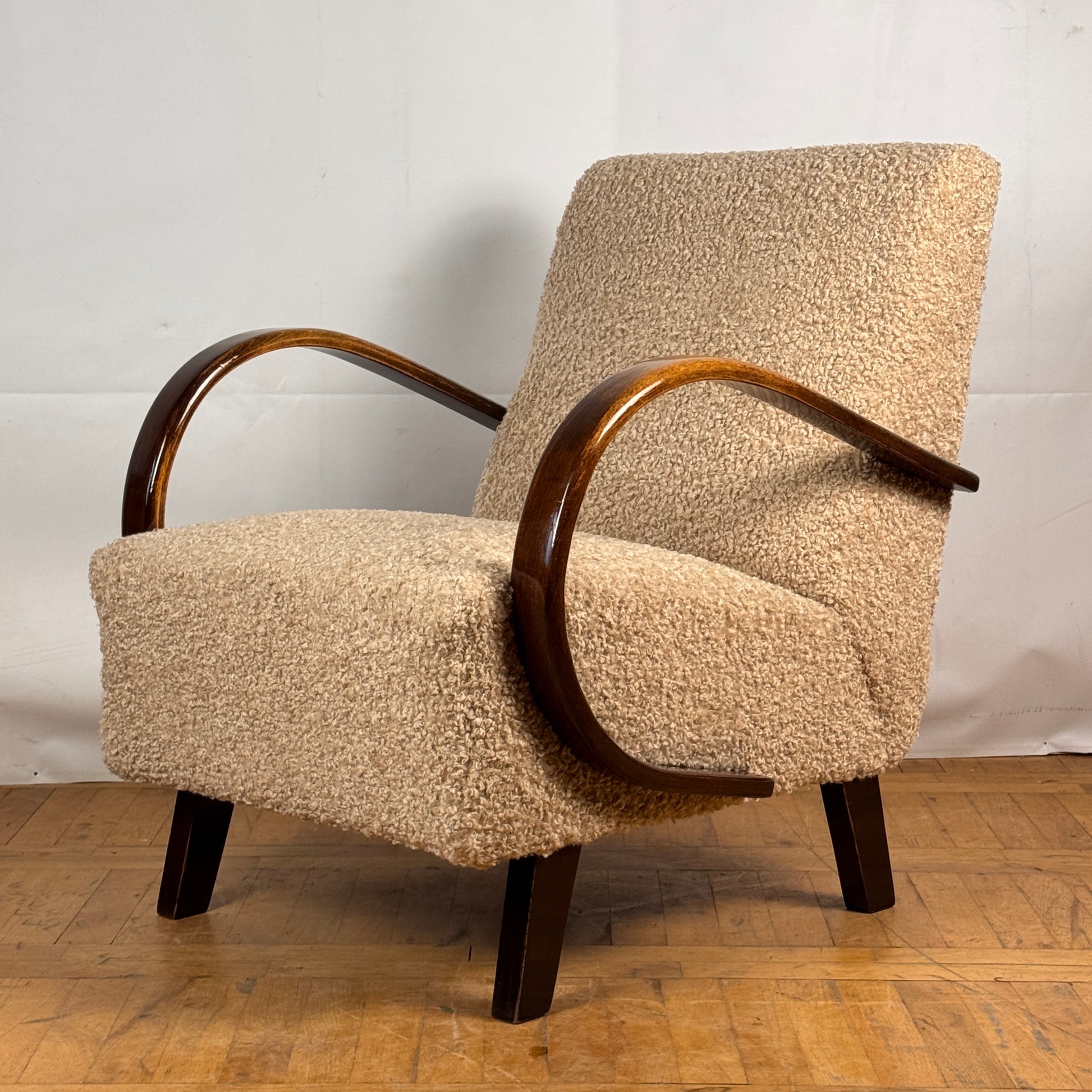 Pair of fully restored beige Jindrich Halabala H-410 art-deco armchairs 1930s