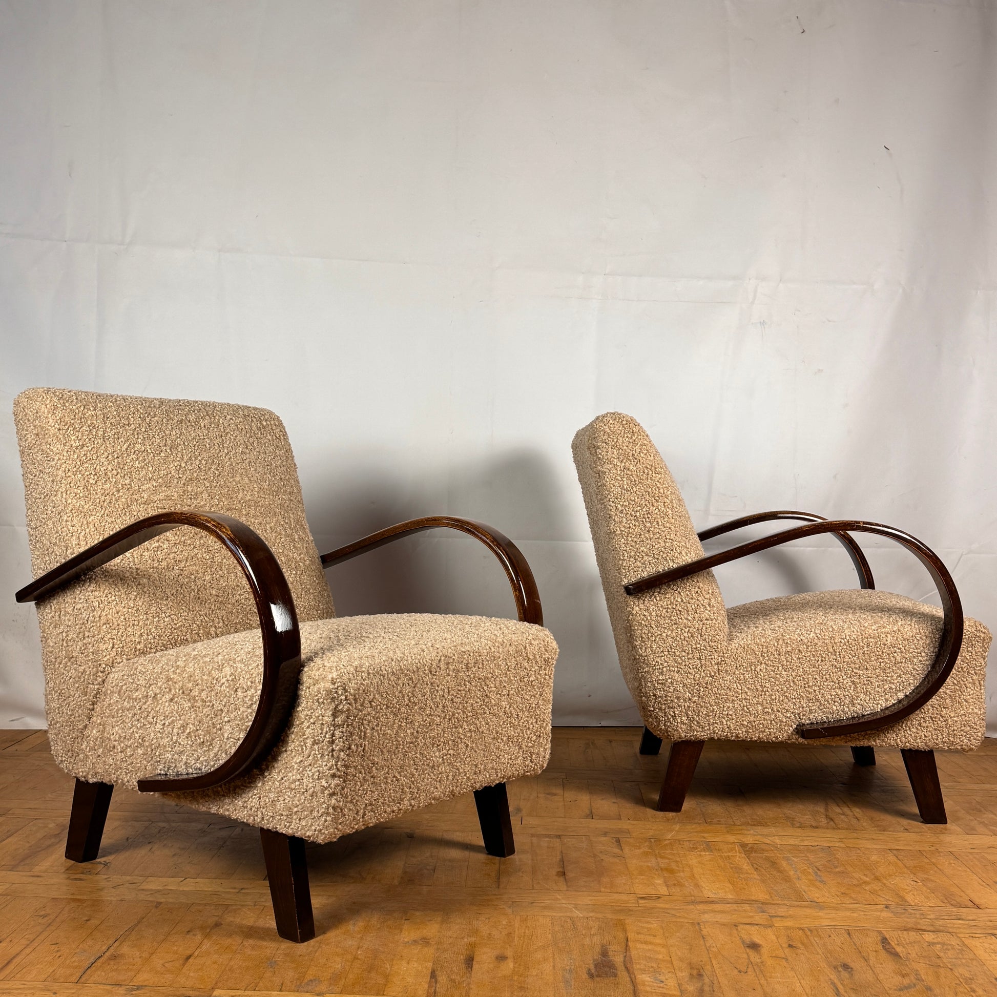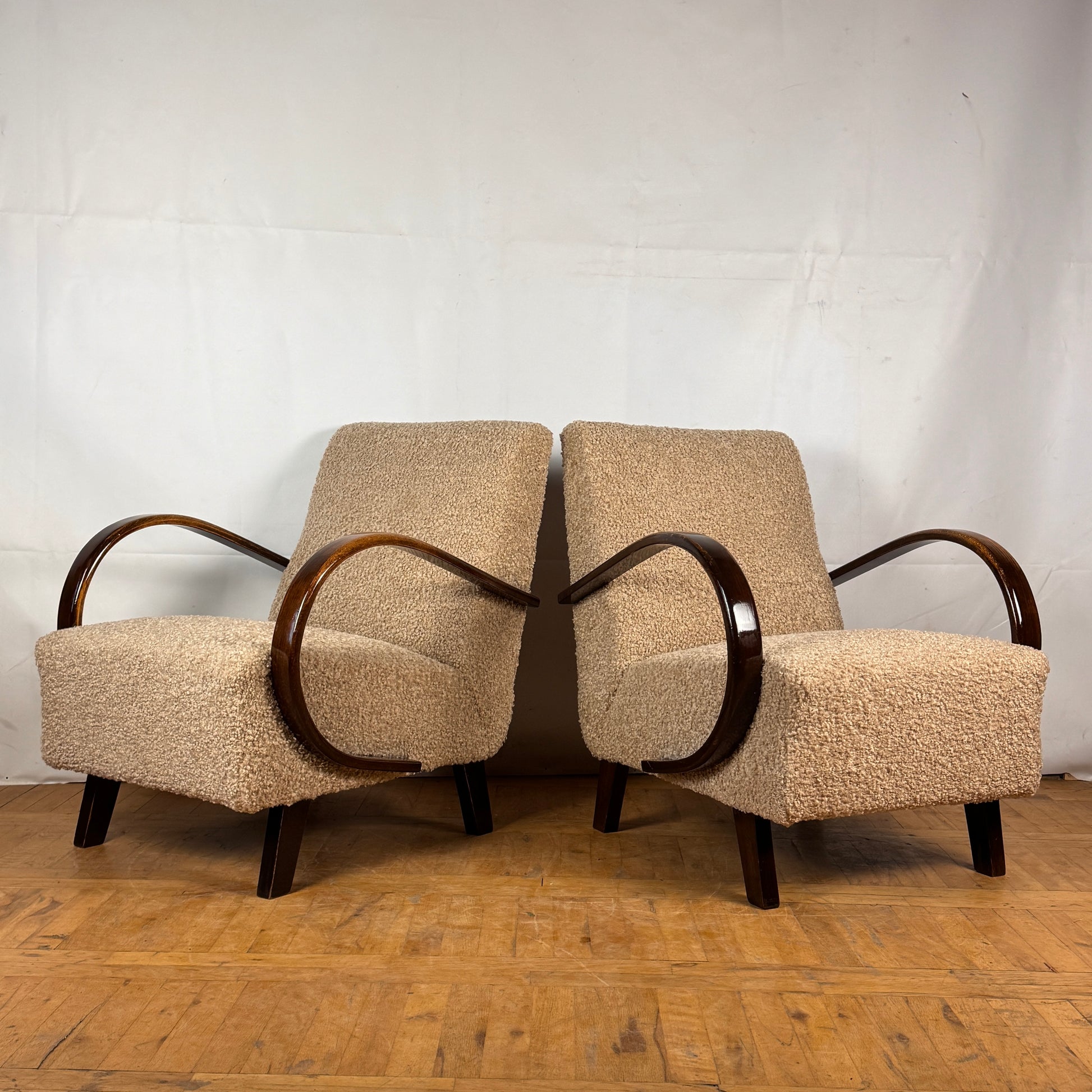 Pair of type H-410 armchairs by Jindrich Halabala for UP Zavody, 1930s. These chairs have been fully refurbished, preserving their timeless elegance.