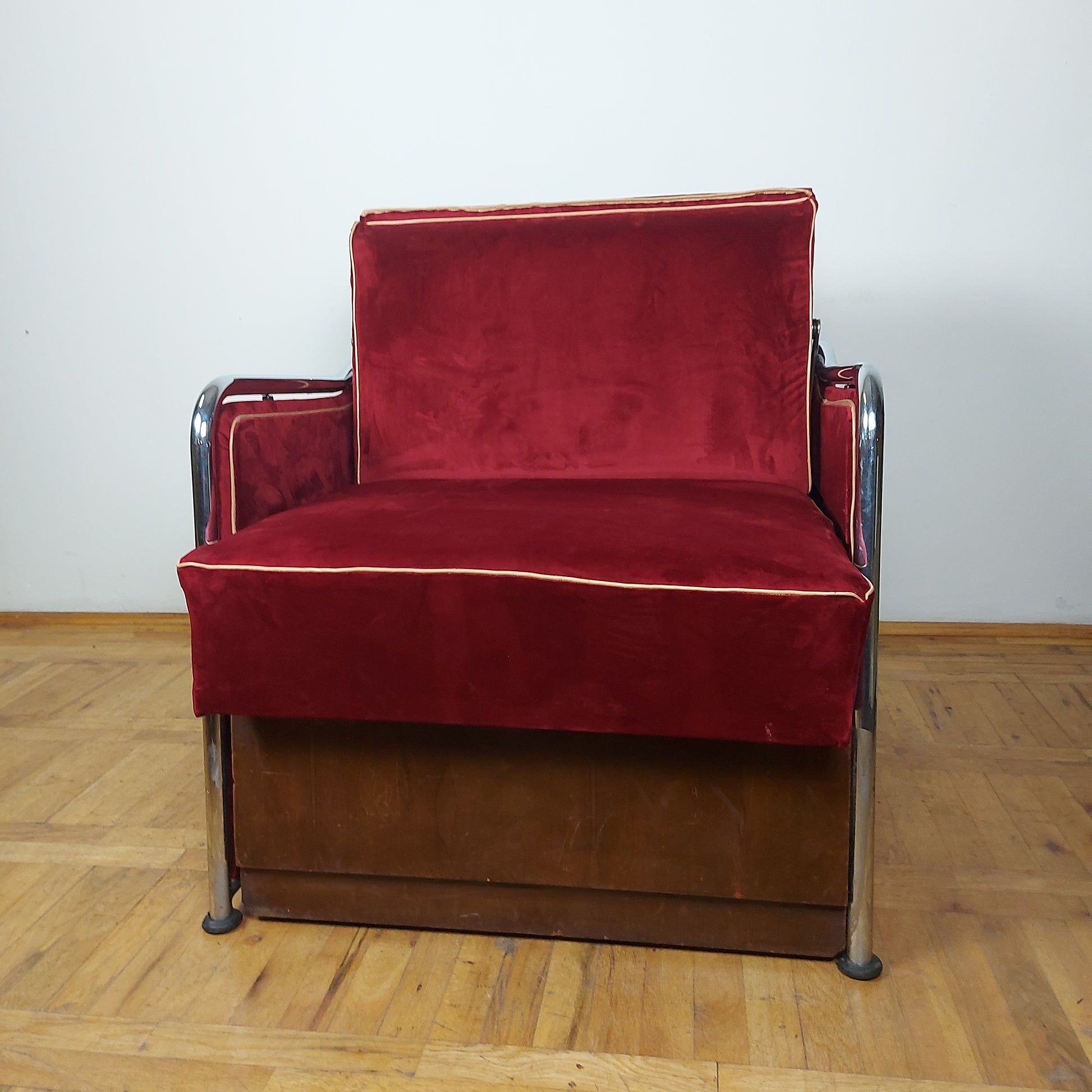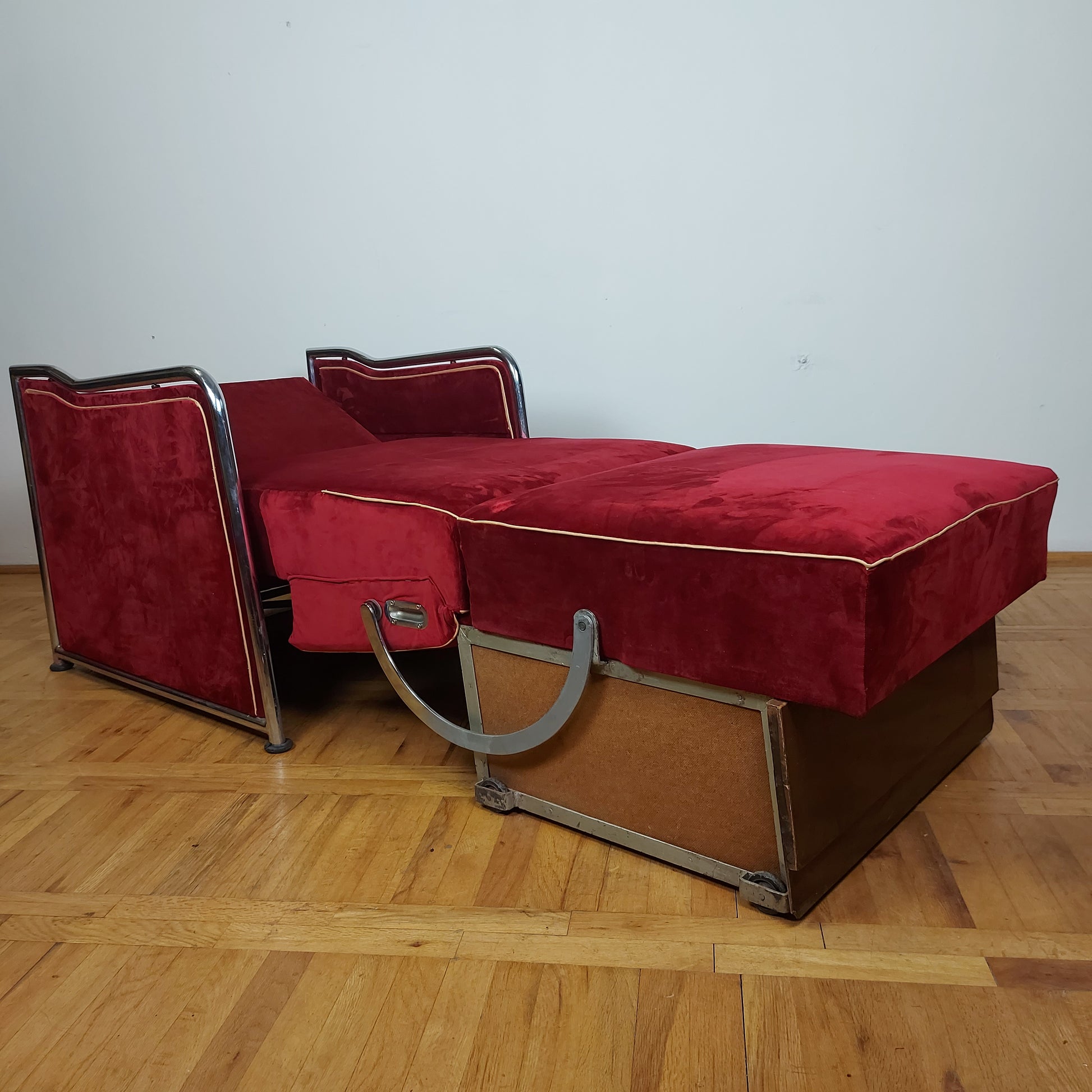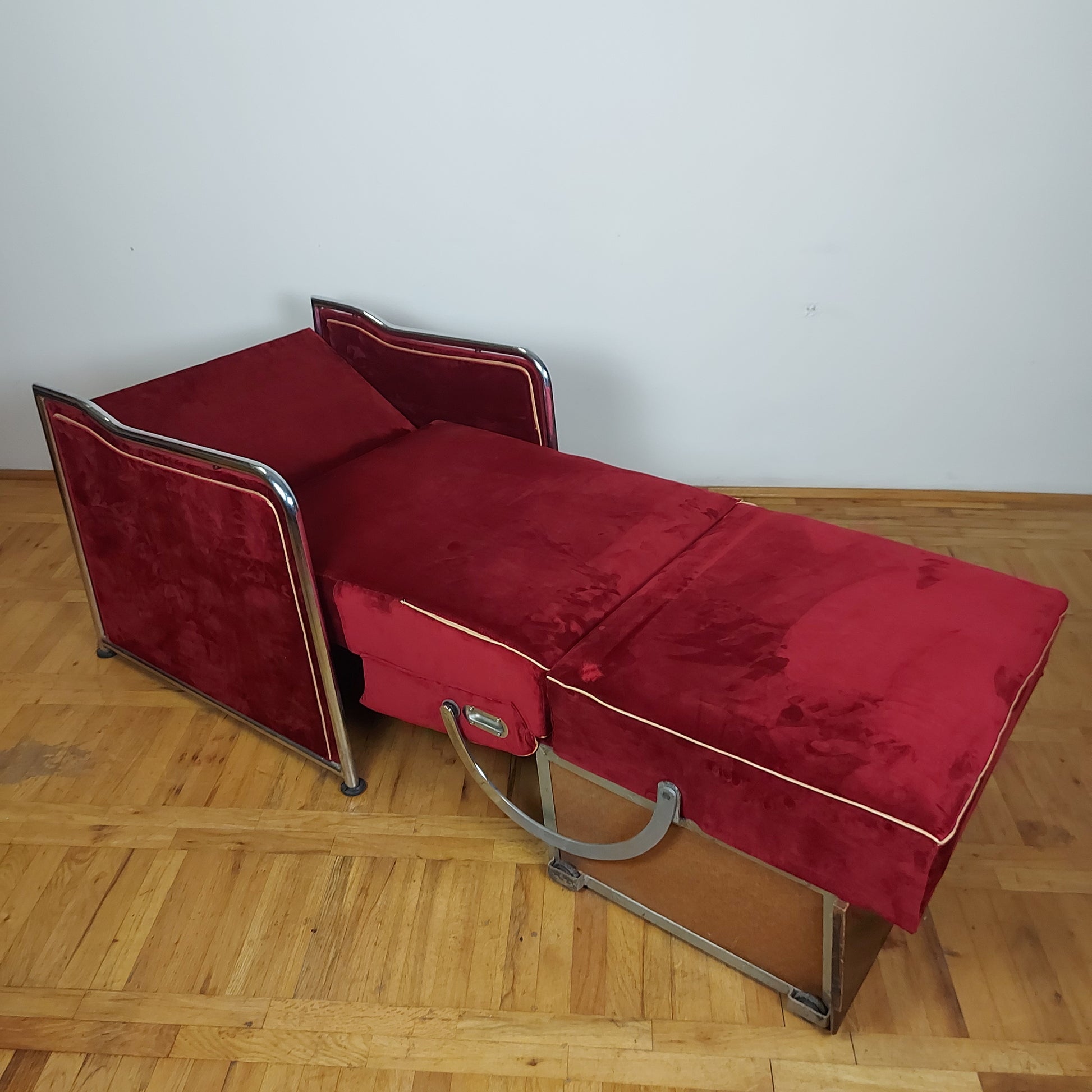 Designed by József Peresztegi in the 1960s, this innovative piece of Hungarian furniture transforms from a comfortable armchair into a single daybed in seconds. A clever and space-saving design, it combines functionality with vintage charm—ideal for modern interiors with a touch of mid-century style.