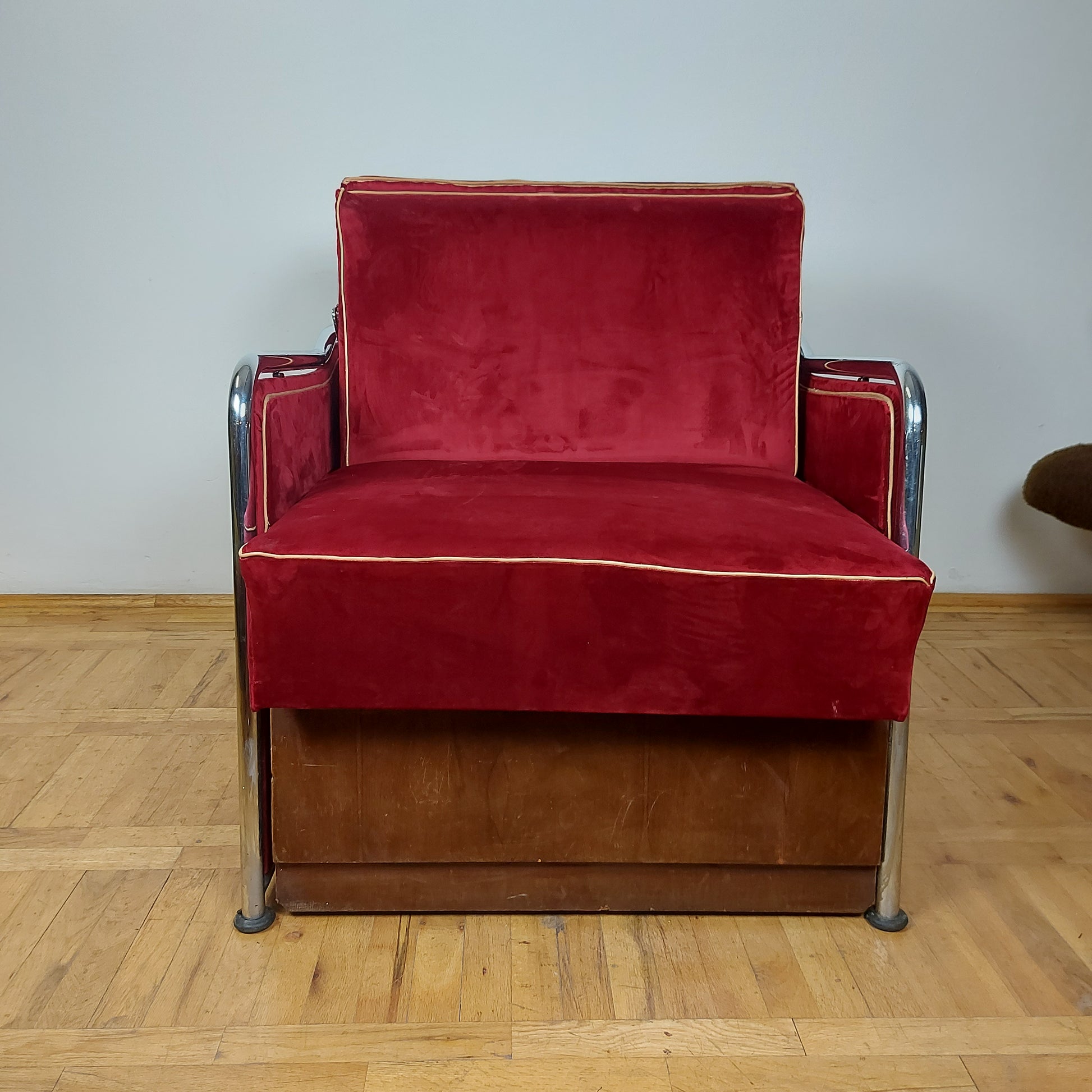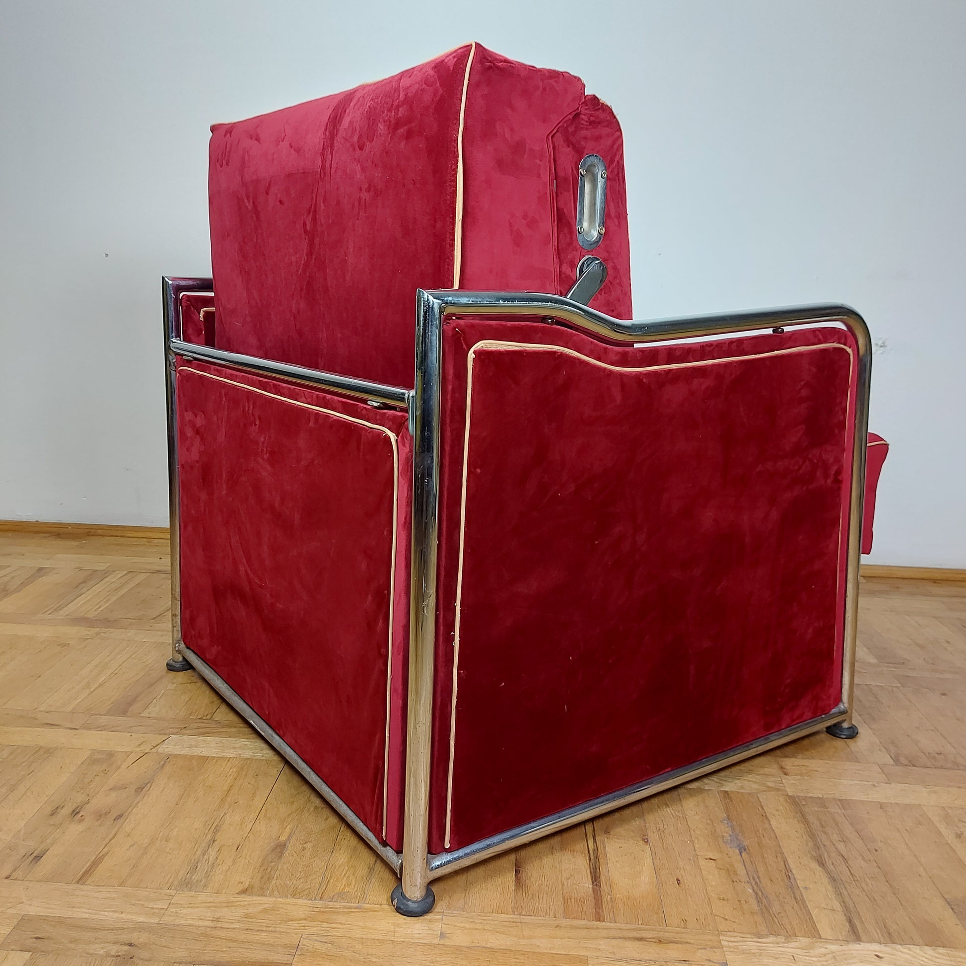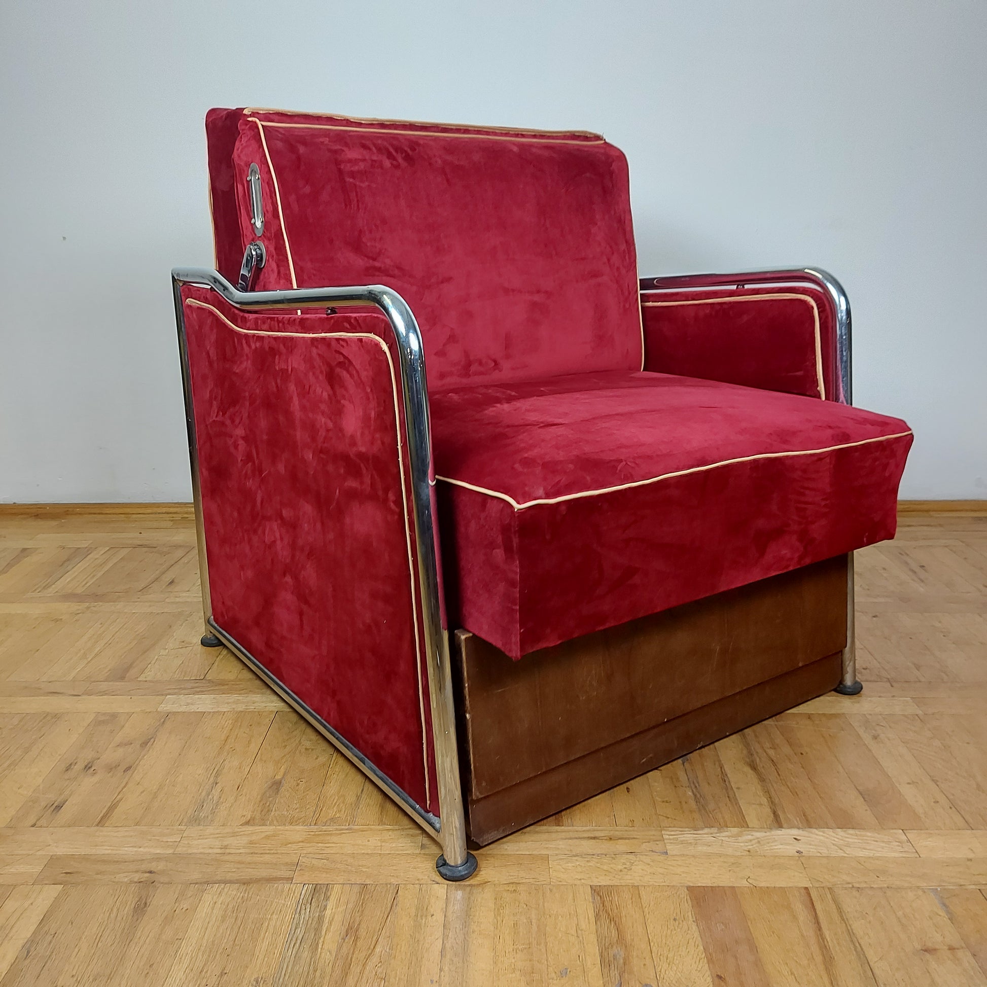 Designed by József Peresztegi in the 1960s, this innovative piece of Hungarian furniture transforms from a comfortable armchair into a single daybed in seconds. A clever and space-saving design, it combines functionality with vintage charm—ideal for modern interiors with a touch of mid-century style.