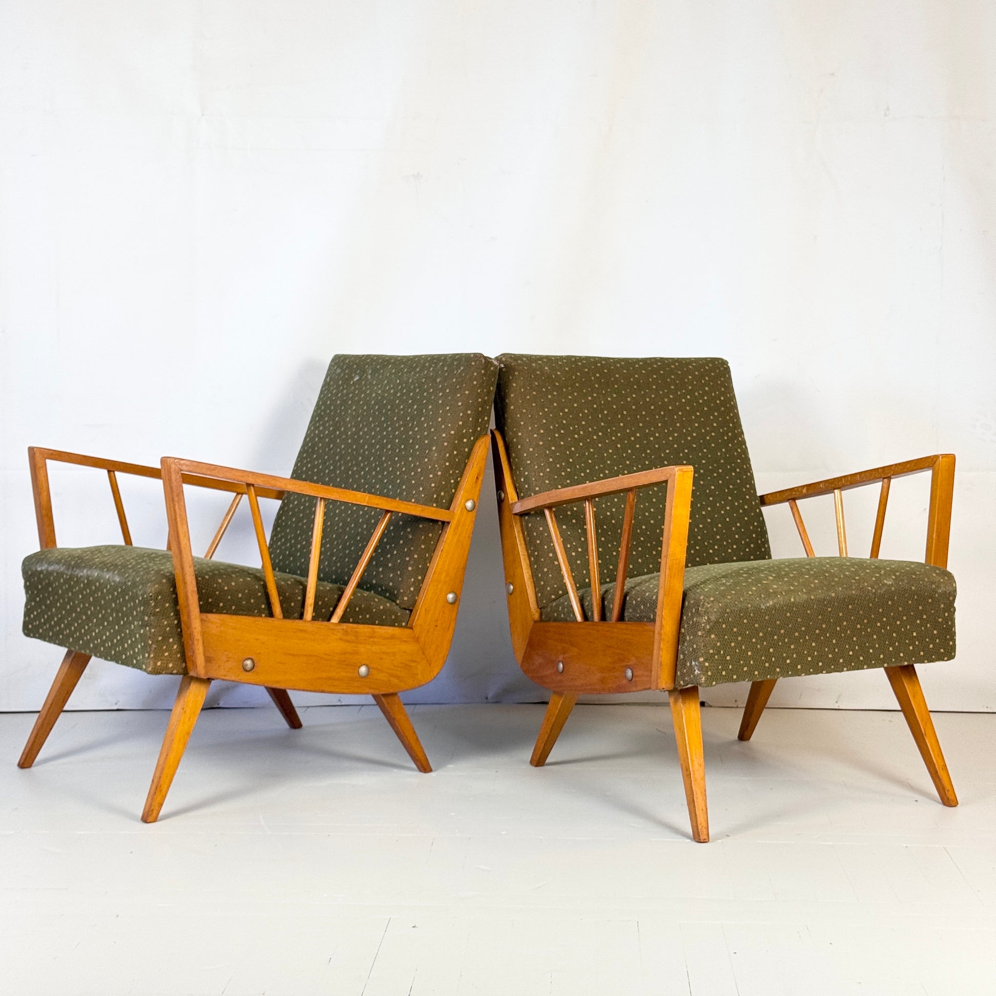 Retro Polish spindle armchair from the 1960s, featuring classic mid-century lines and a distinctive open-frame design. The chair is in very good original vintage condition with minor signs of use. If desired, we can offer professional refurbishment tailored to your preferred fabric and finish.