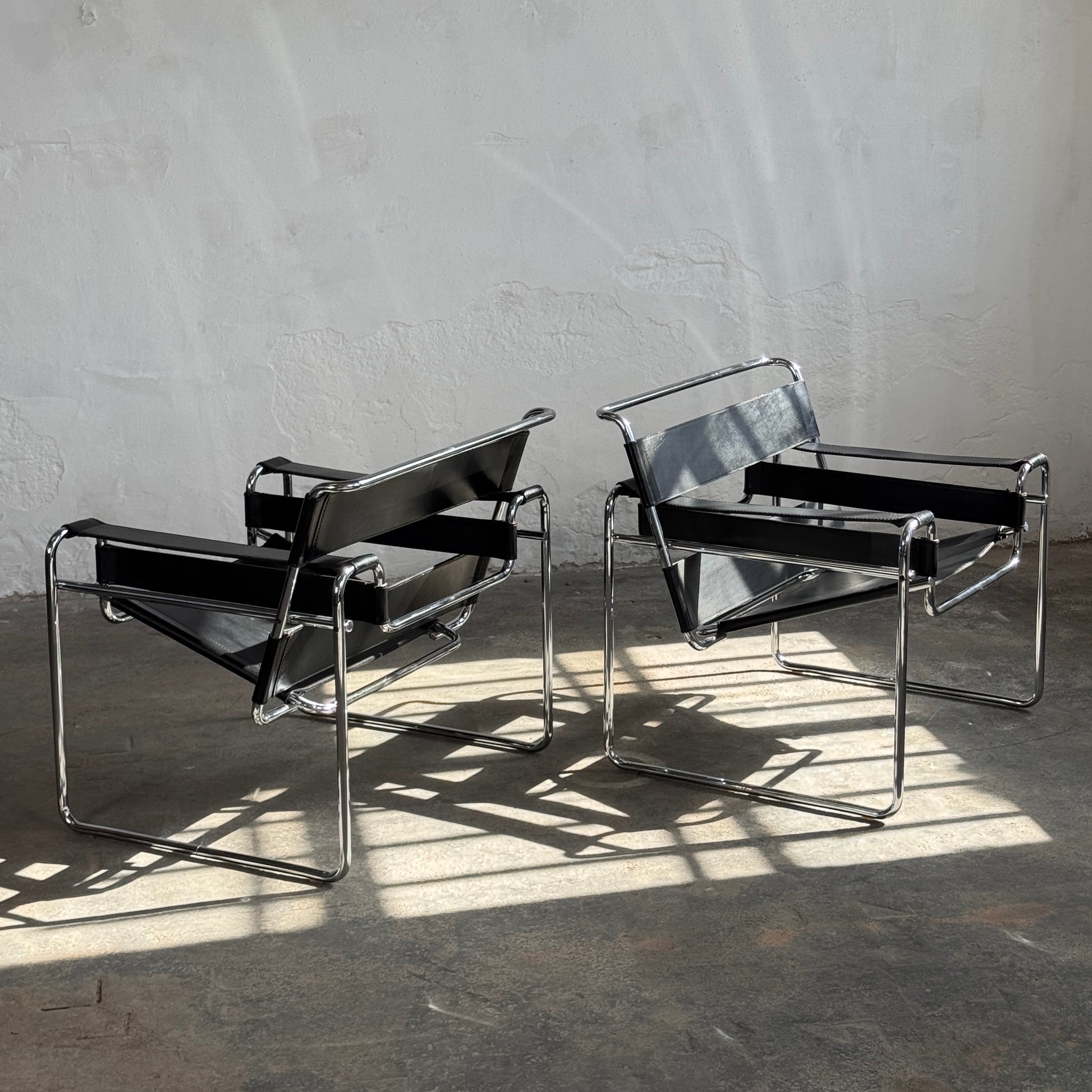 This is a rare opportunity to acquire a pair of authentic Wassily Chairs, designed by the legendary Marcel Breuer and produced by Knoll. A cornerstone of 20th-century modernism, the Wassily chair (Model B3) was the first of its kind to utilize seamless tubular steel, inspired by the innovative construction of Adler bicycles.