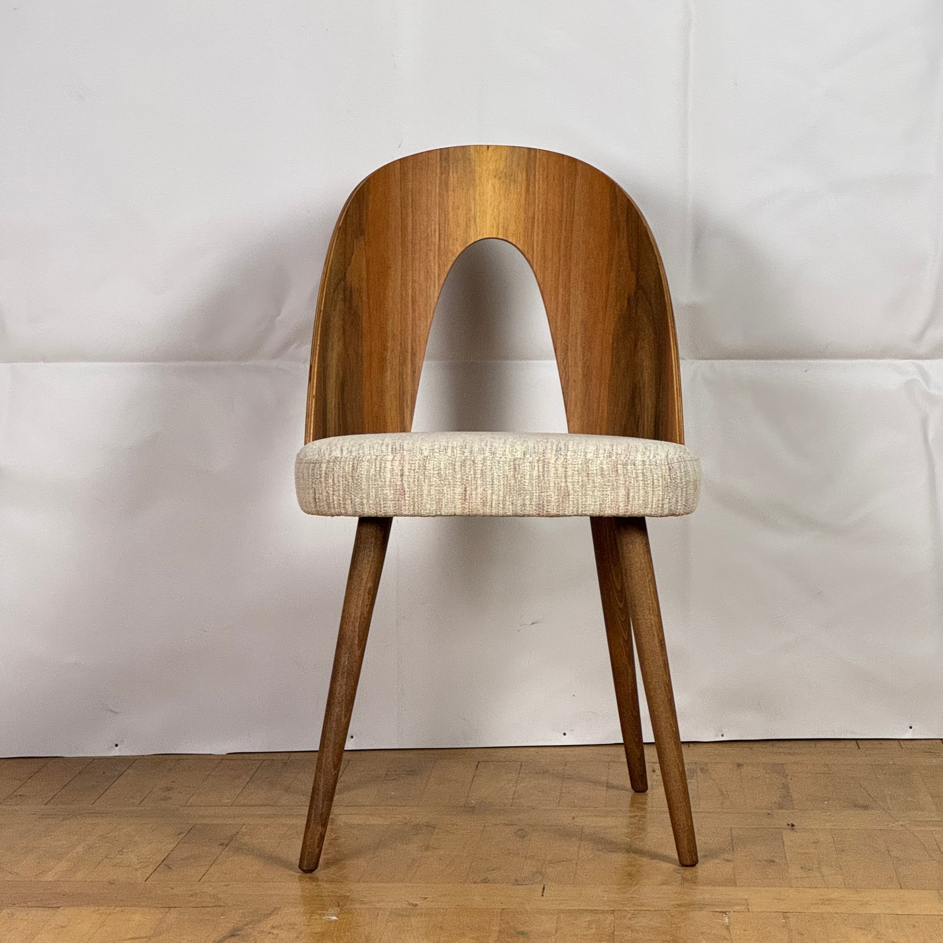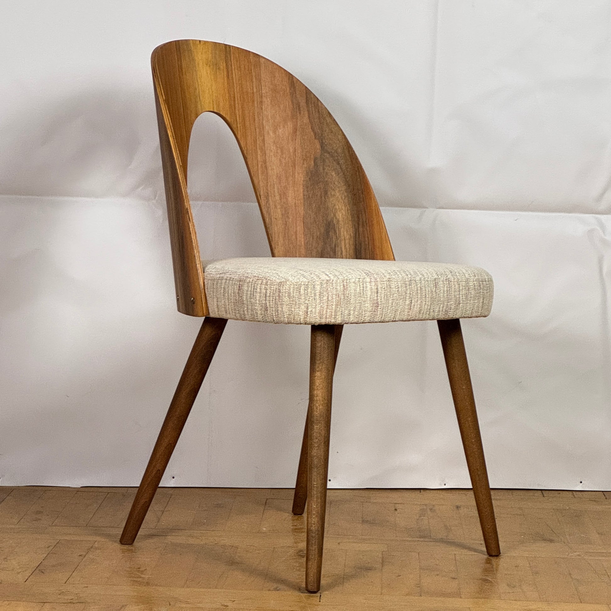 A set of two fully restored dining chairs designed by Antonín Šuman and manufactured by Tatra Nábytok in the 1960s. These iconic mid-century pieces feature a solid and stable structure, beautifully refurbished woodwork, and new foam padding with fresh upholstery—offering both comfort and timeless style.