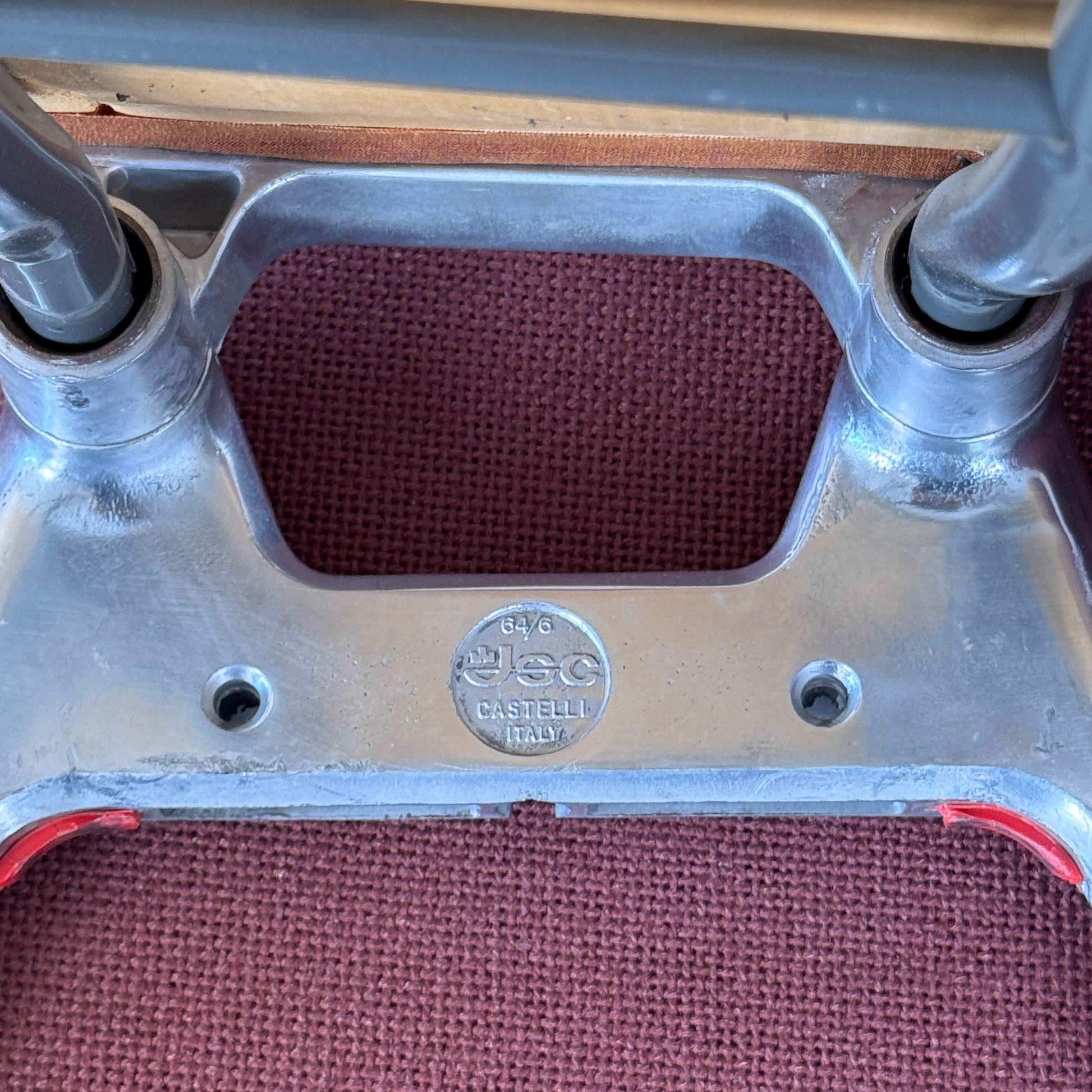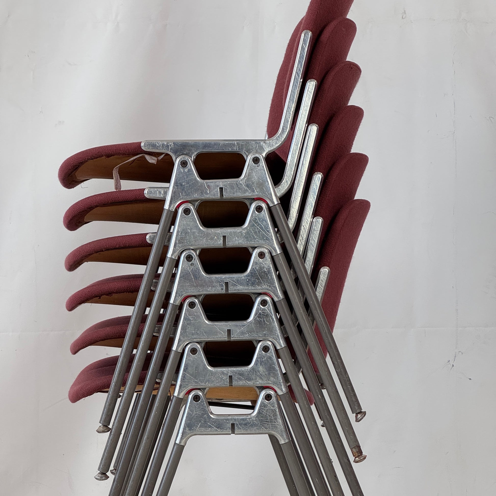 Set of 6 original Castelli chairs designed by Giancarlo Piretti in the 1980s. These iconic Italian chairs feature a sleek aluminum frame with molded seats and backrests — a perfect blend of functionality and timeless industrial design. The set is in vintage condition, showing signs of use consistent with age.