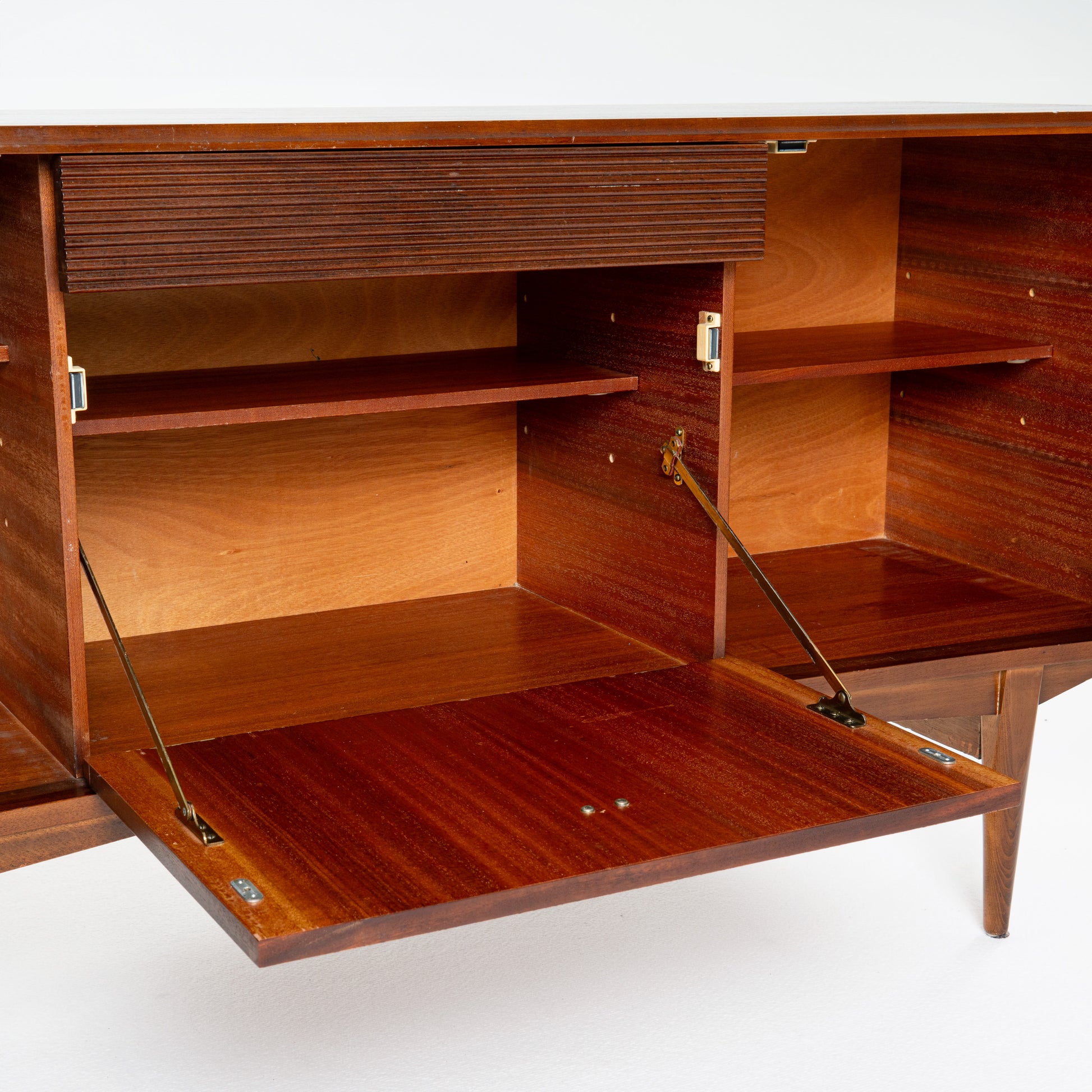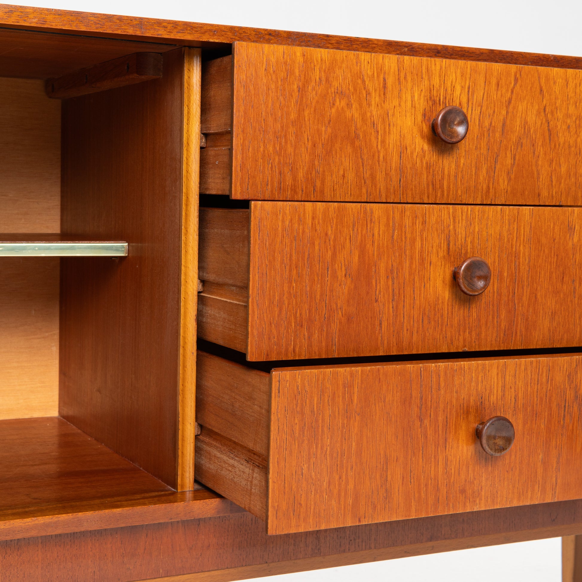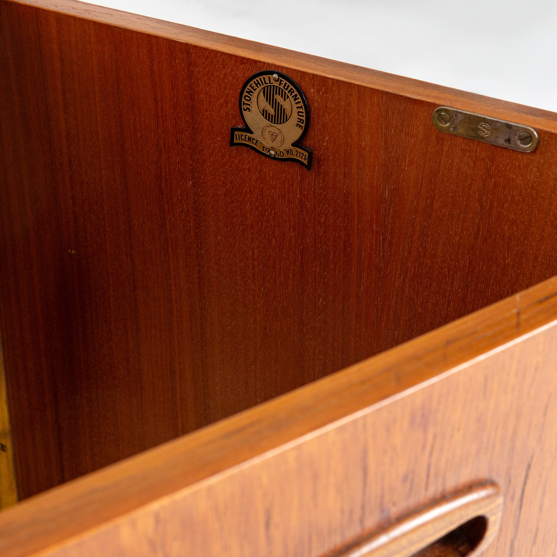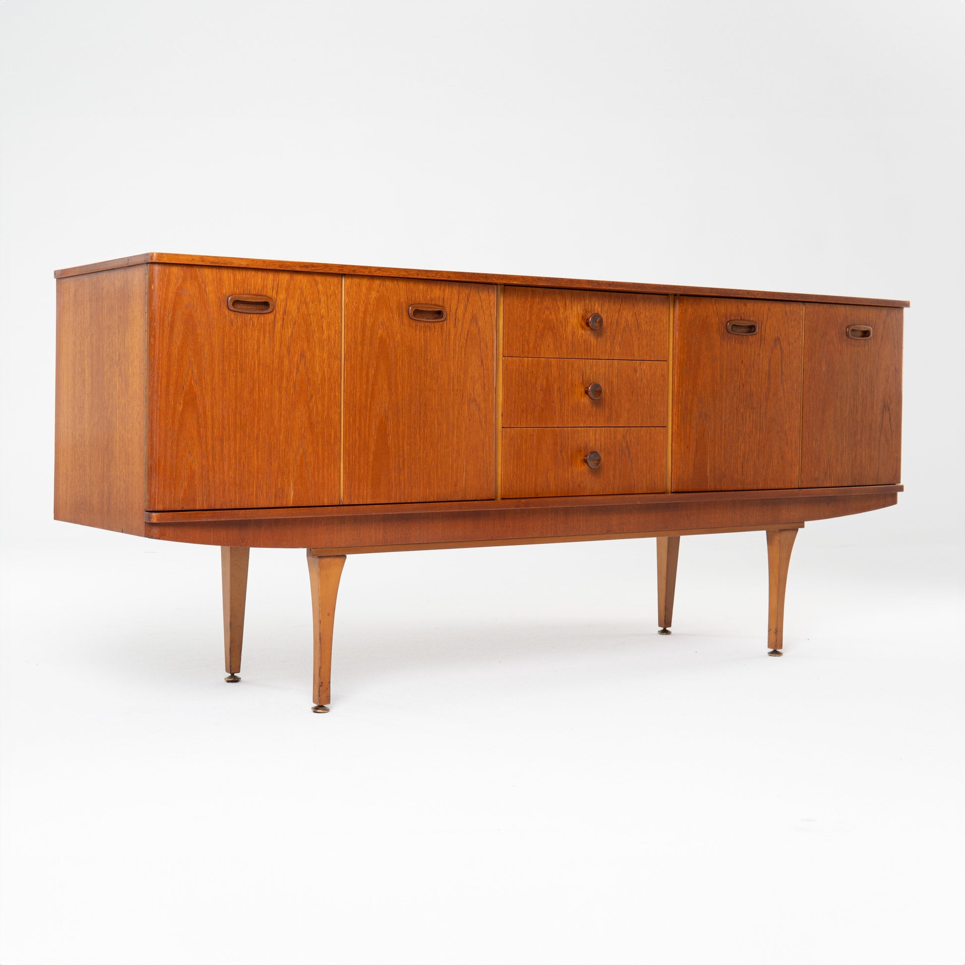 Teak sideboard by the British Stonehill. Dimensions W182 x D45 x H77 cm.