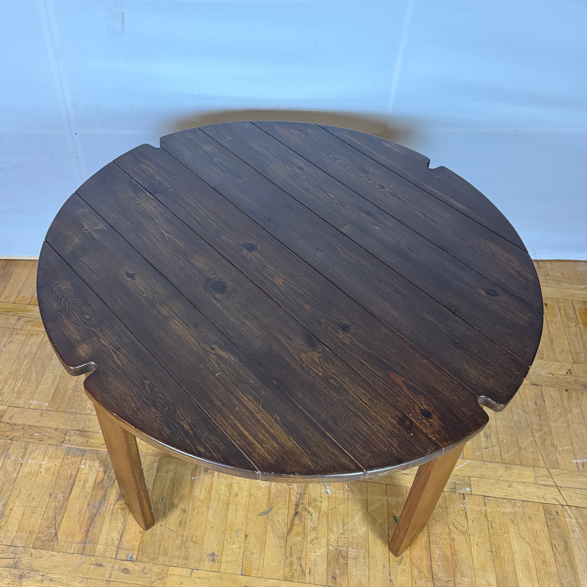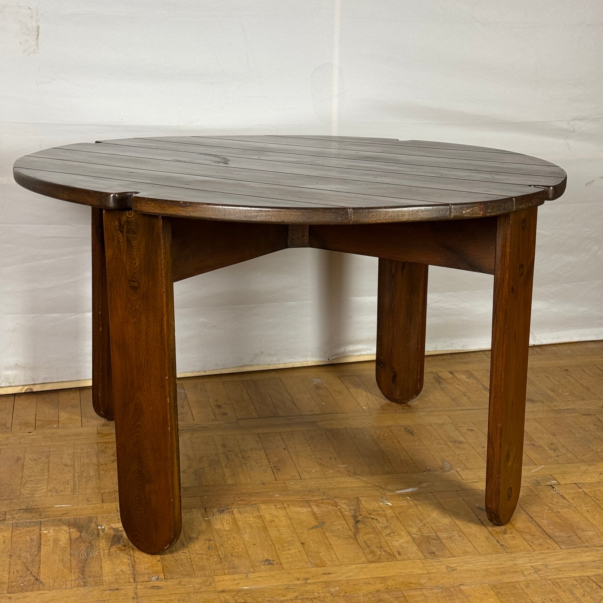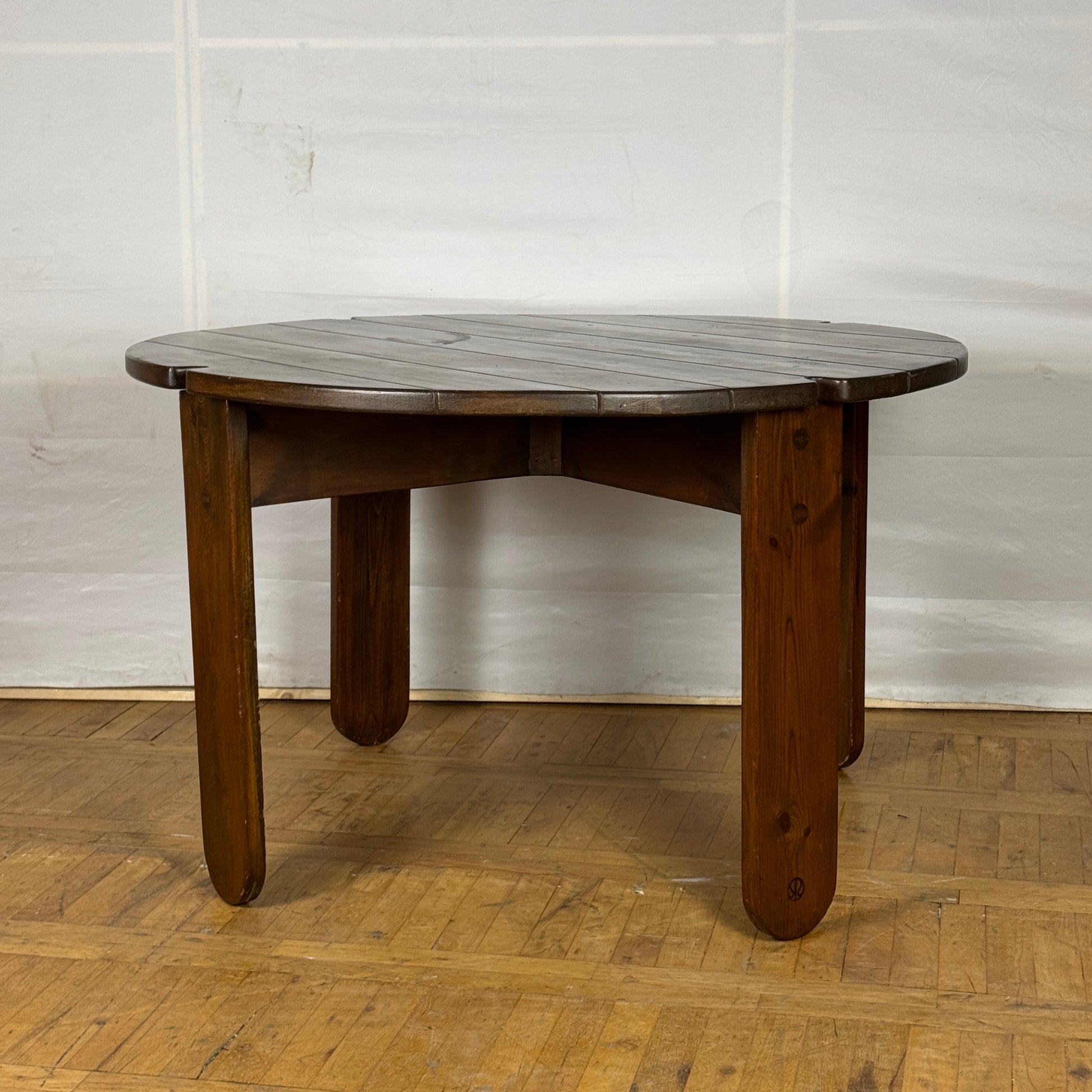 Very nice round pine dining table designed by Hungarian Márta Leszl Szedleczky in the 1980s.