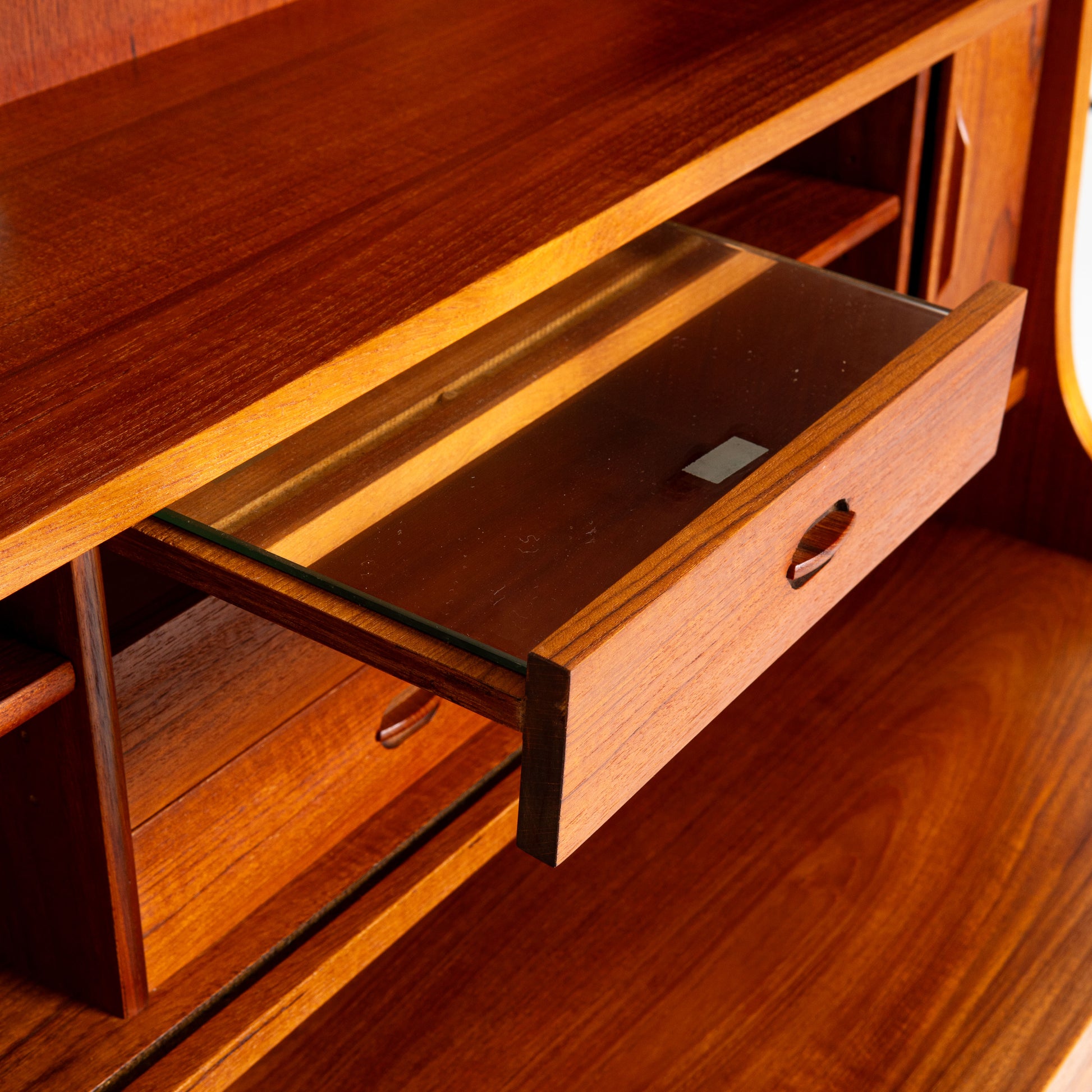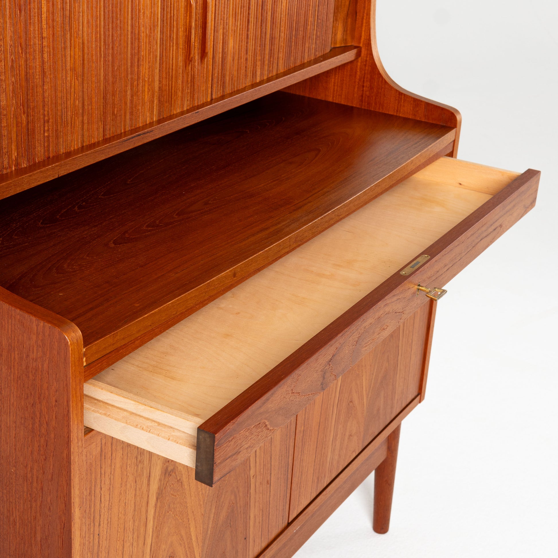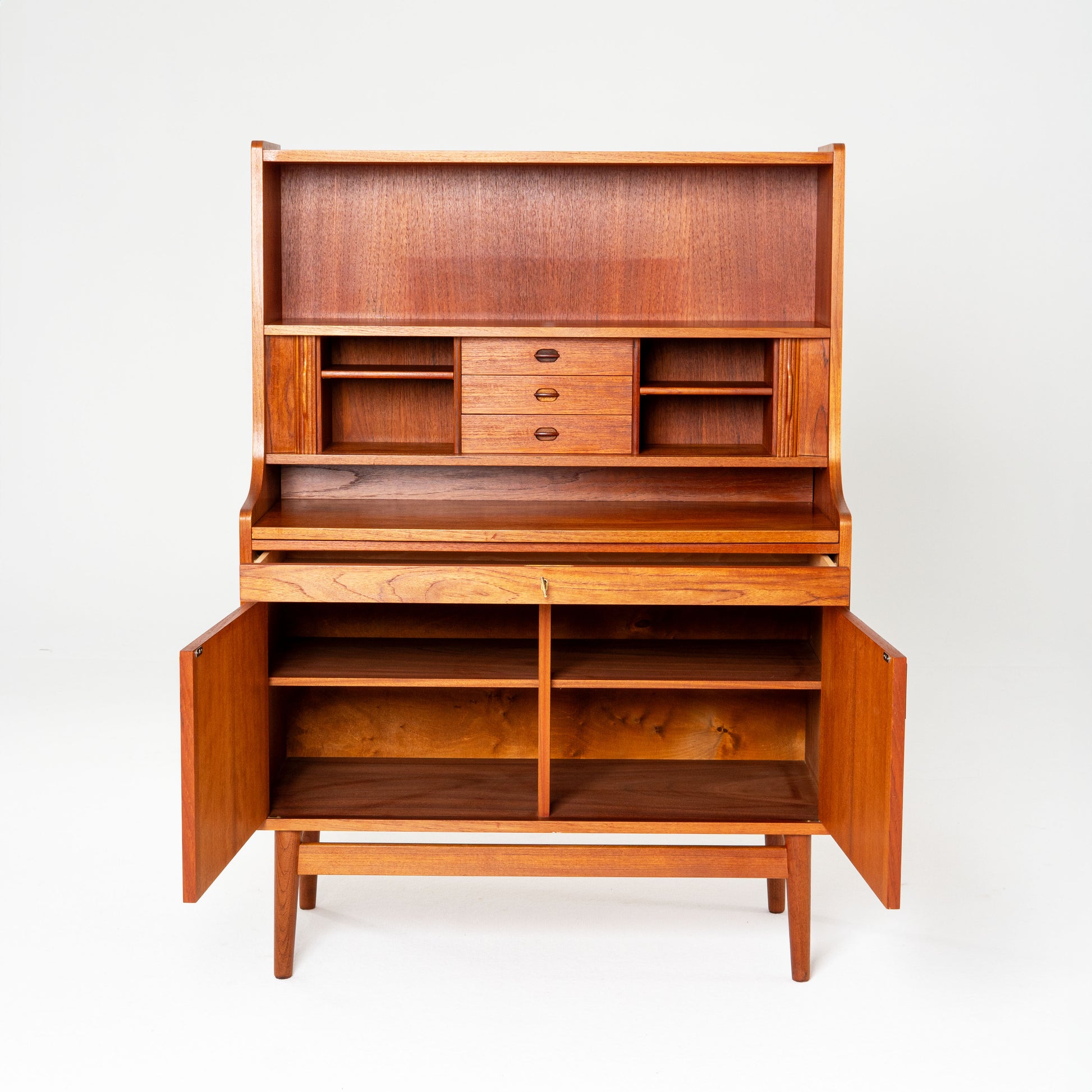 Nice teak secretary by the Danish designer Børge Mogensen. The furniture is in very nice condition with an unfortunate small hole (see 1st picture).